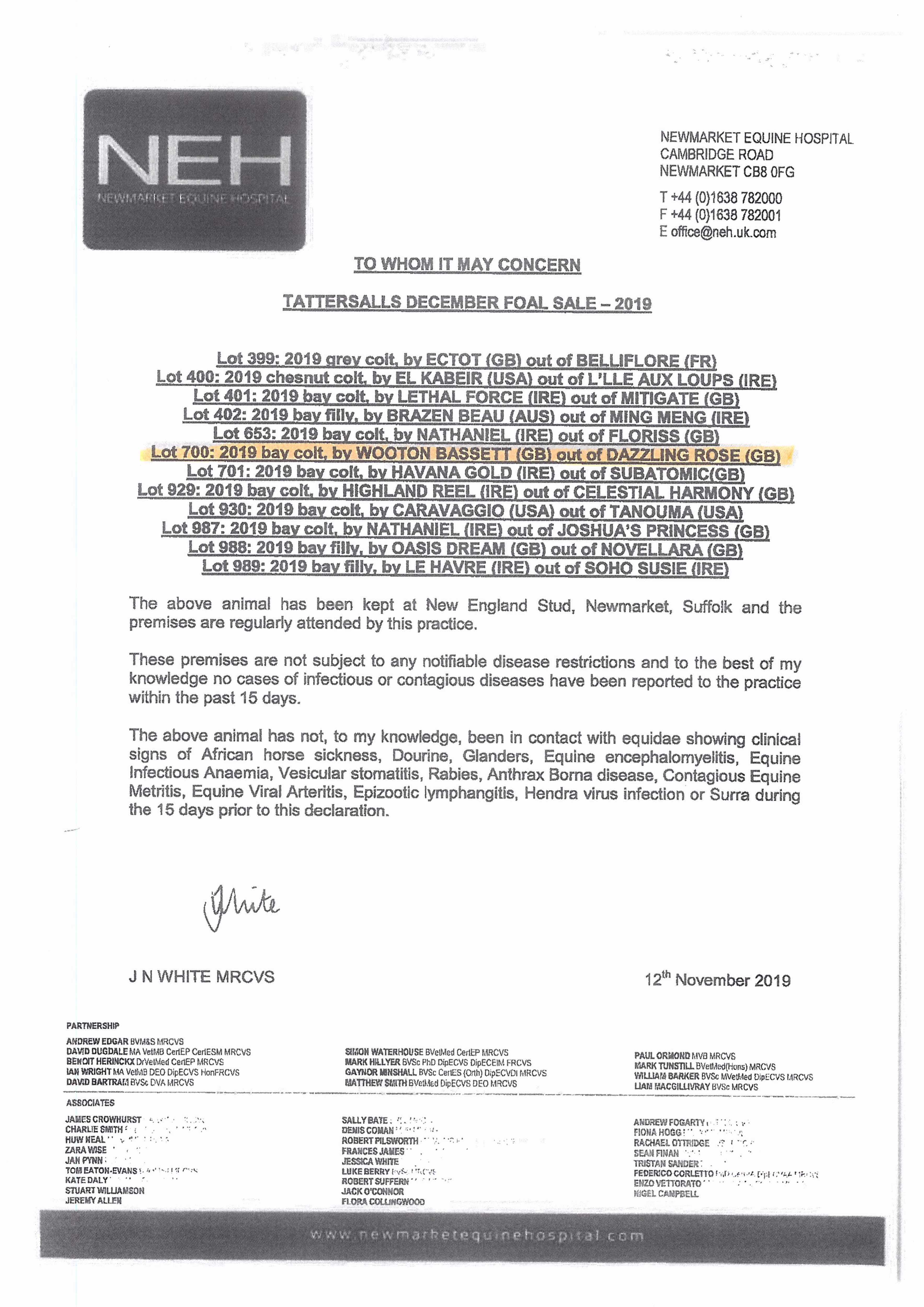 December Foal Sale 2020 lot 615 C. by Muhaarar (GB) 2020, Norelands Stud, Ireland=>Kelly Equine Services 14,000 gns