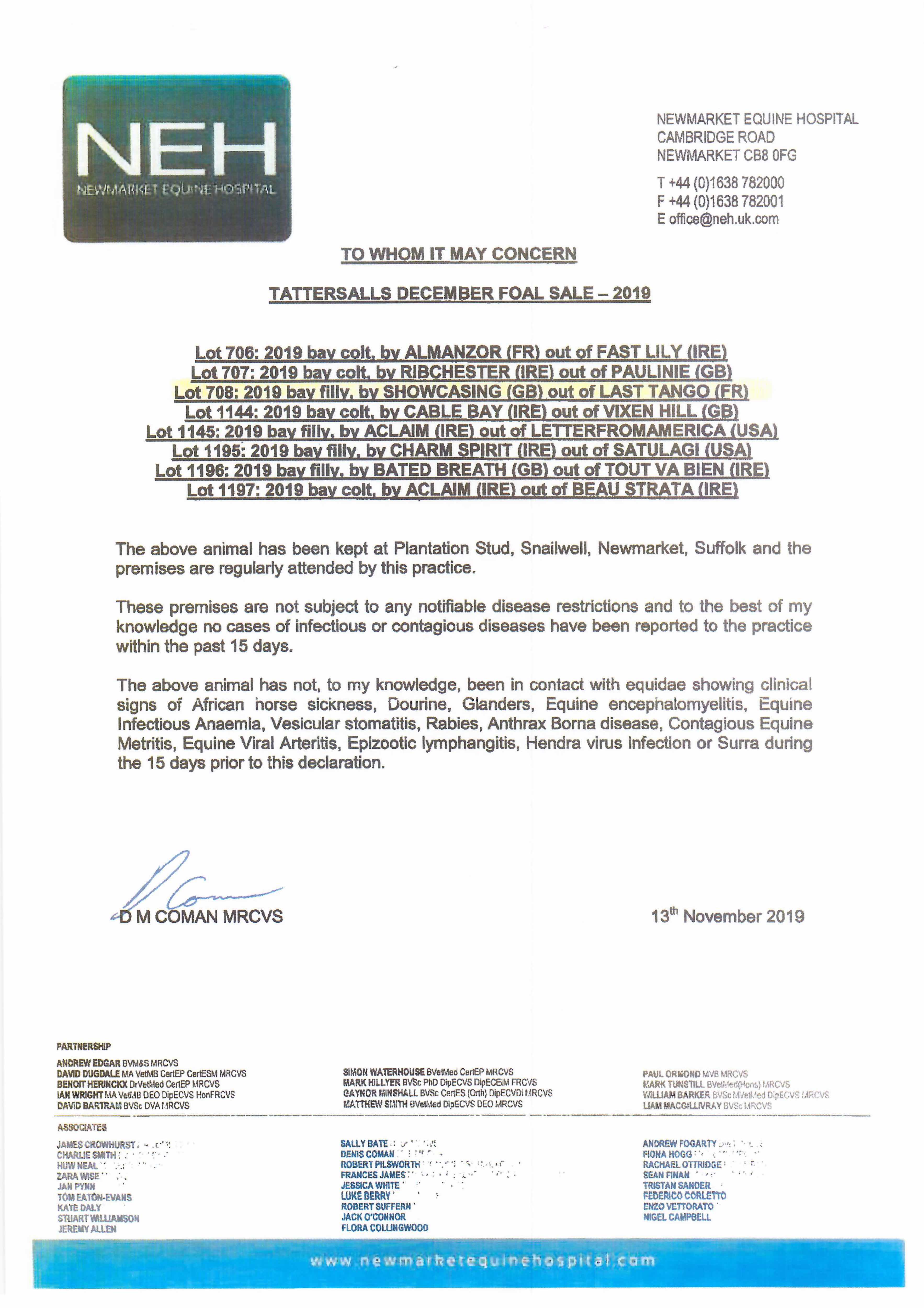 December Foal Sale 2018 lot 630 C. by Shalaa (IRE) 2018, Plantation Stud=>Abbeylands Farm 100,000 gns