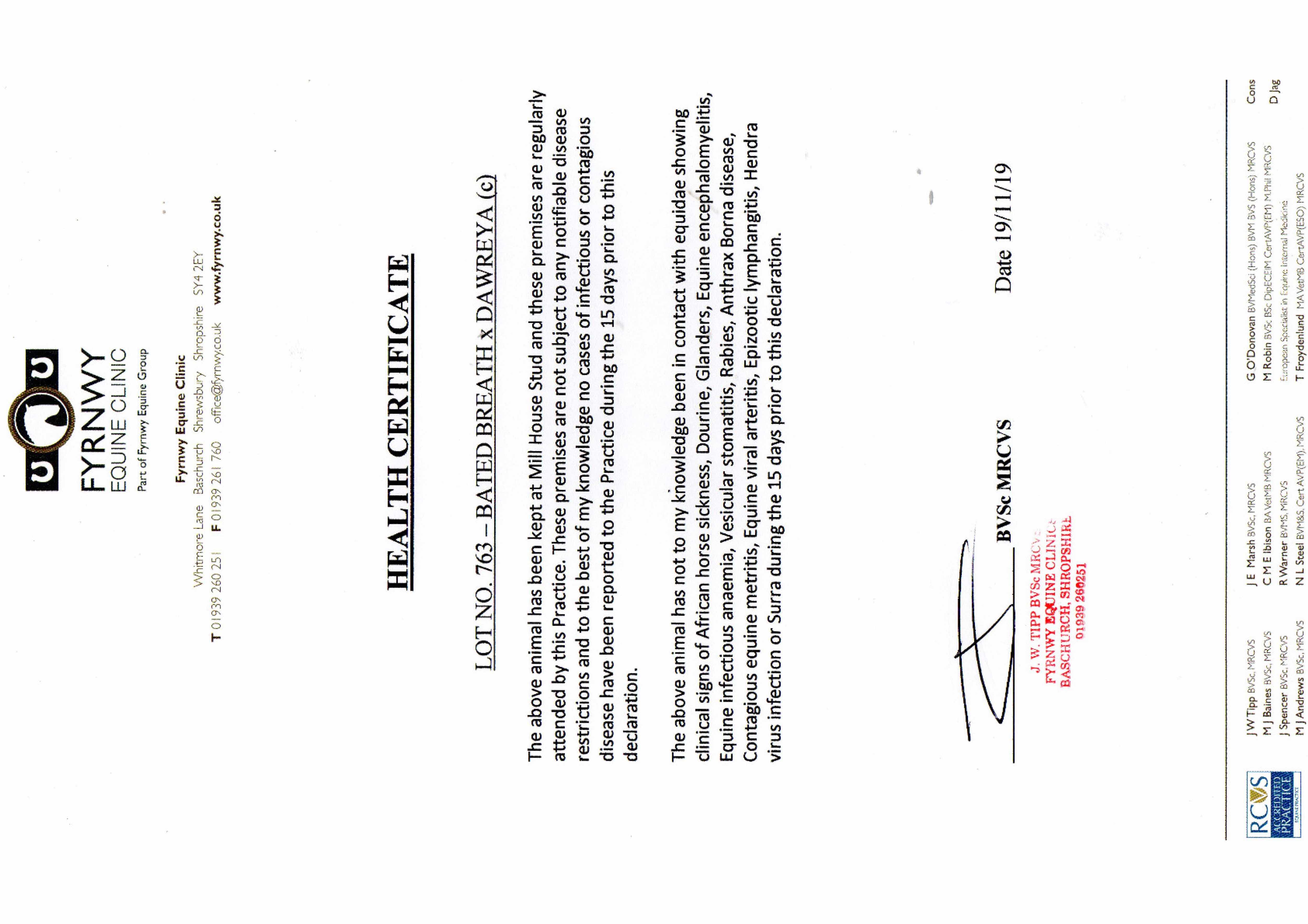 Consignor: Mill House Stud (Agent)