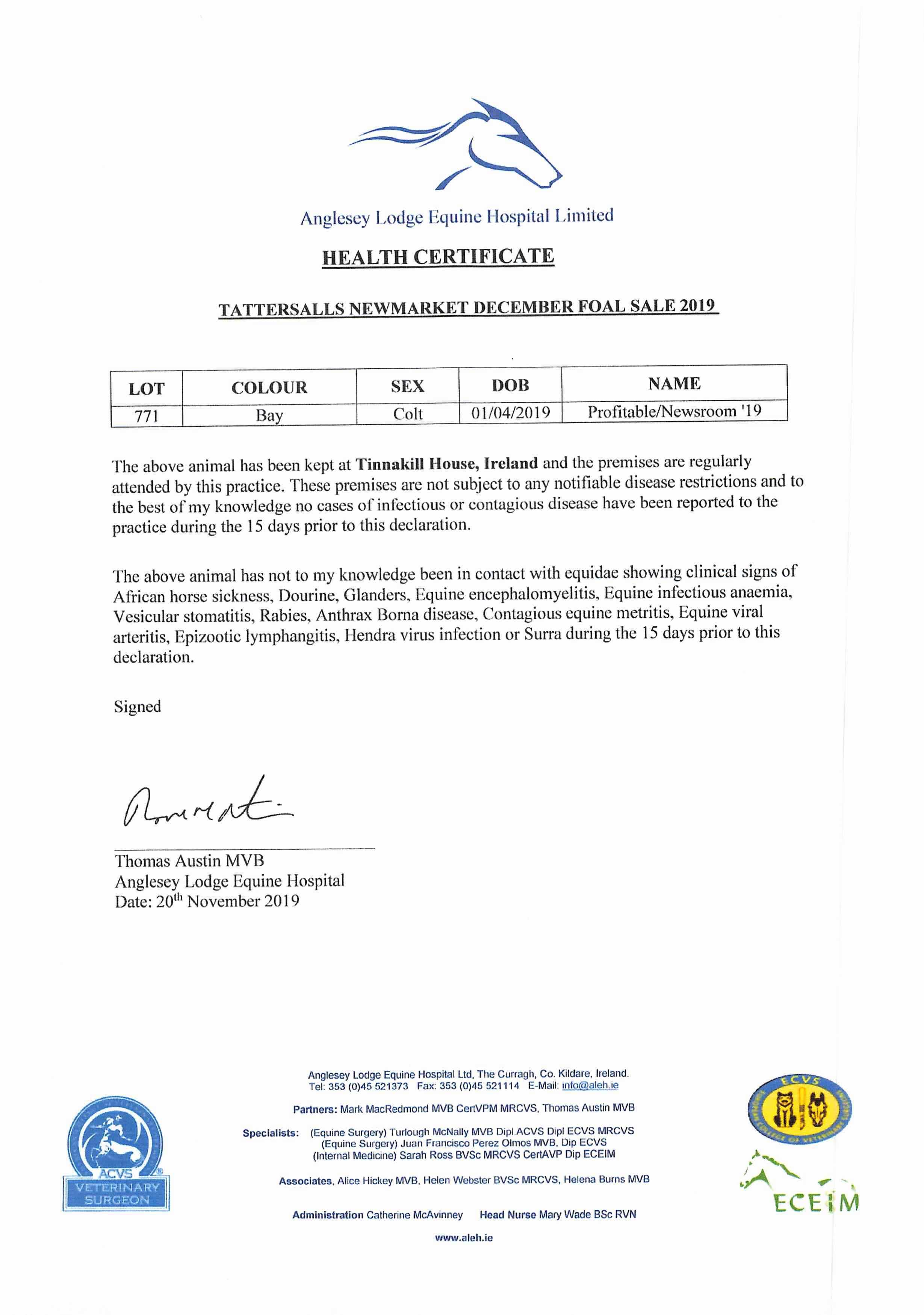 Consignor: Tinnakill House, Ireland