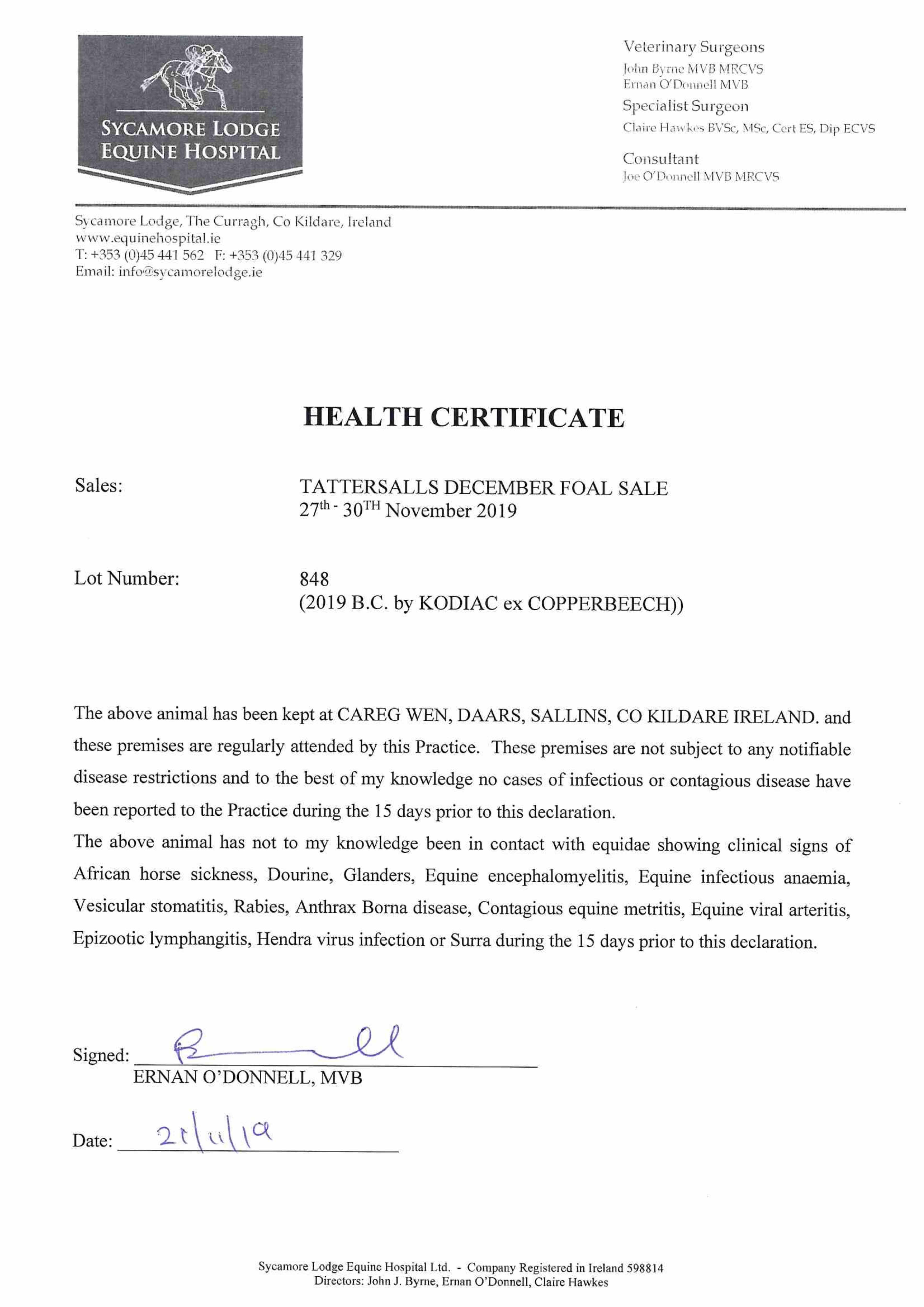 Consignor: Ballyshannon Stud, Ireland
