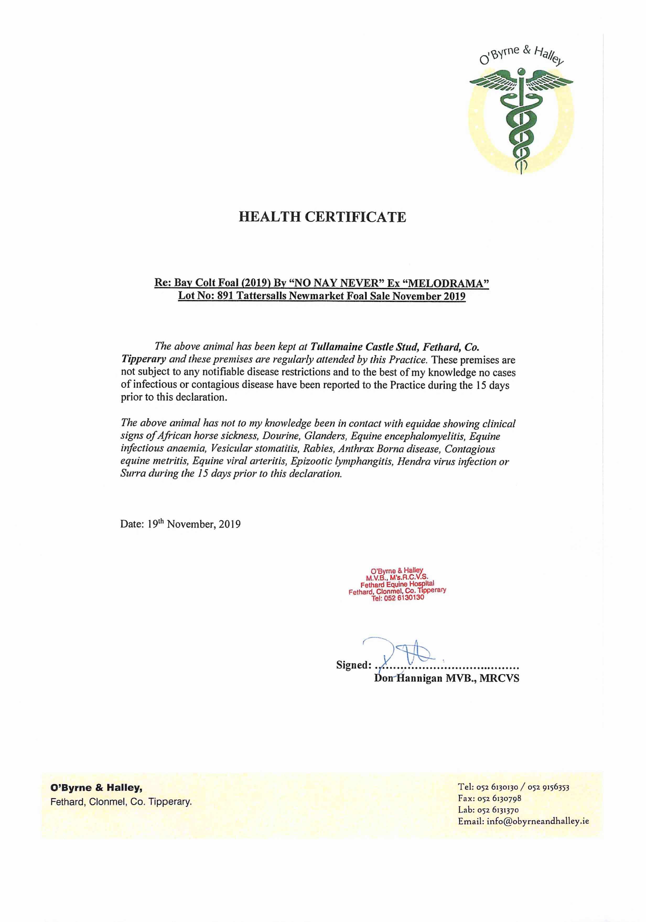 December Foal Sale 2014 lot 1253 F. by Henrythenavigator (USA) 2014, Tullamaine Castle Stud, Ireland & Partners=>Lot Not Sold 11,000 gns