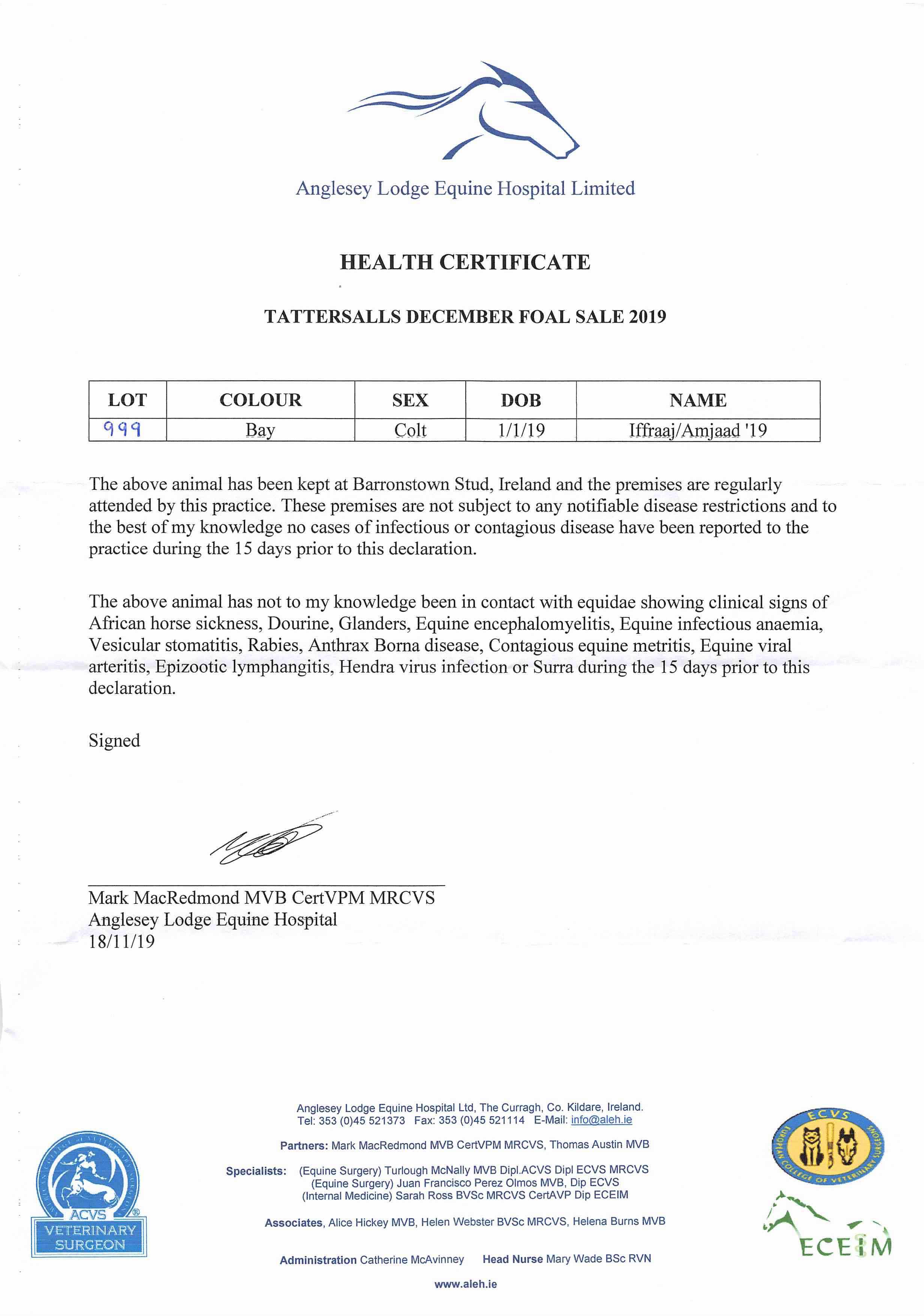 December Foal Sale 2020 lot 925 C. by Churchill (IRE) 2020, Norelands Stud, Ireland=>Glenvale Stud 65,000 gns