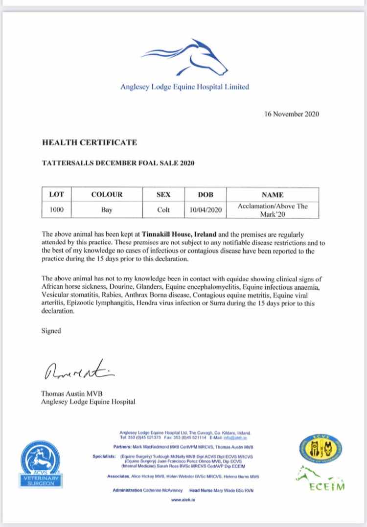 December Foal Sale 2019 lot 919 C. by Animal Kingdom (USA) 2019, Tinnakill House, Ireland=>Vendor 25,000 gns