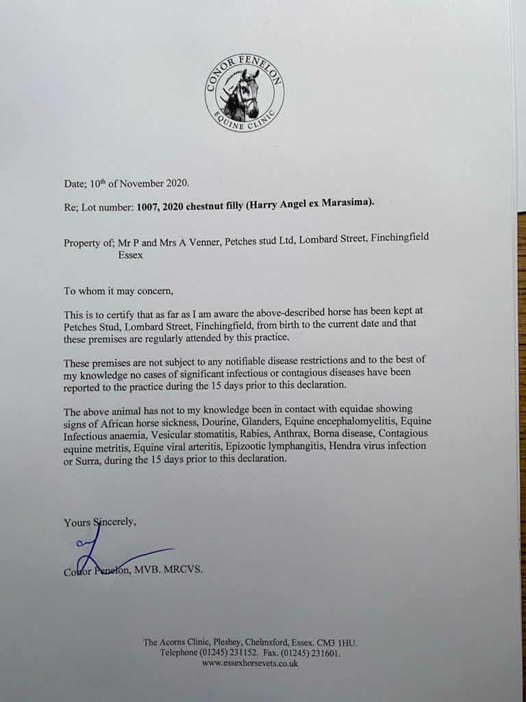 December Foal Sale 2019 lot 1045 F. by Caravaggio (USA) 2019, Petches Farm=>Emerald Bloodstock 80,000 gns