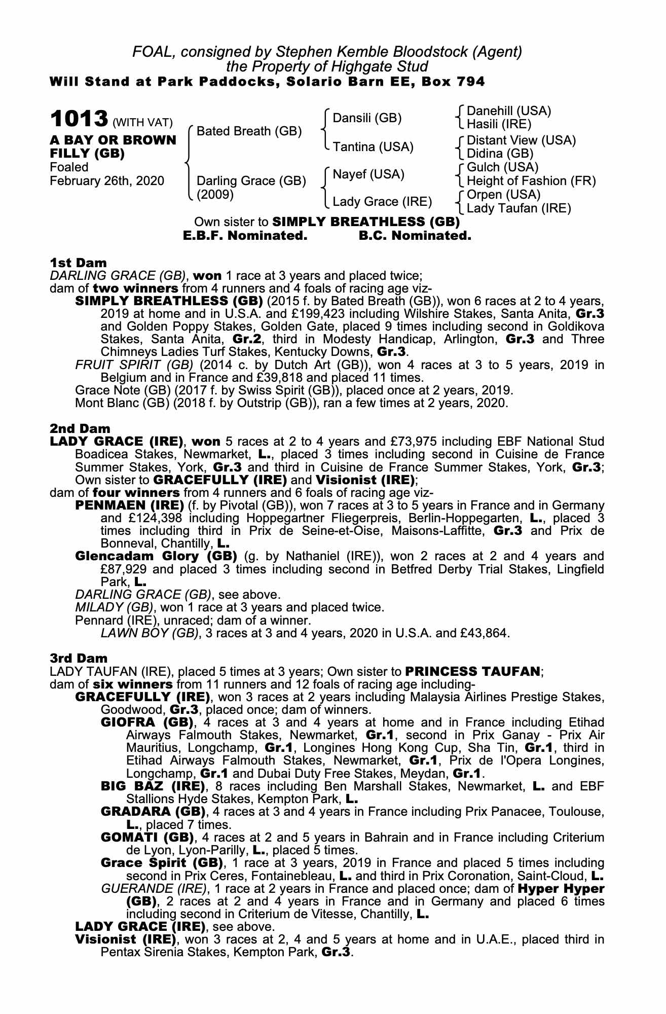 Consignor: Stephen Kemble Bloodstock (Agent)