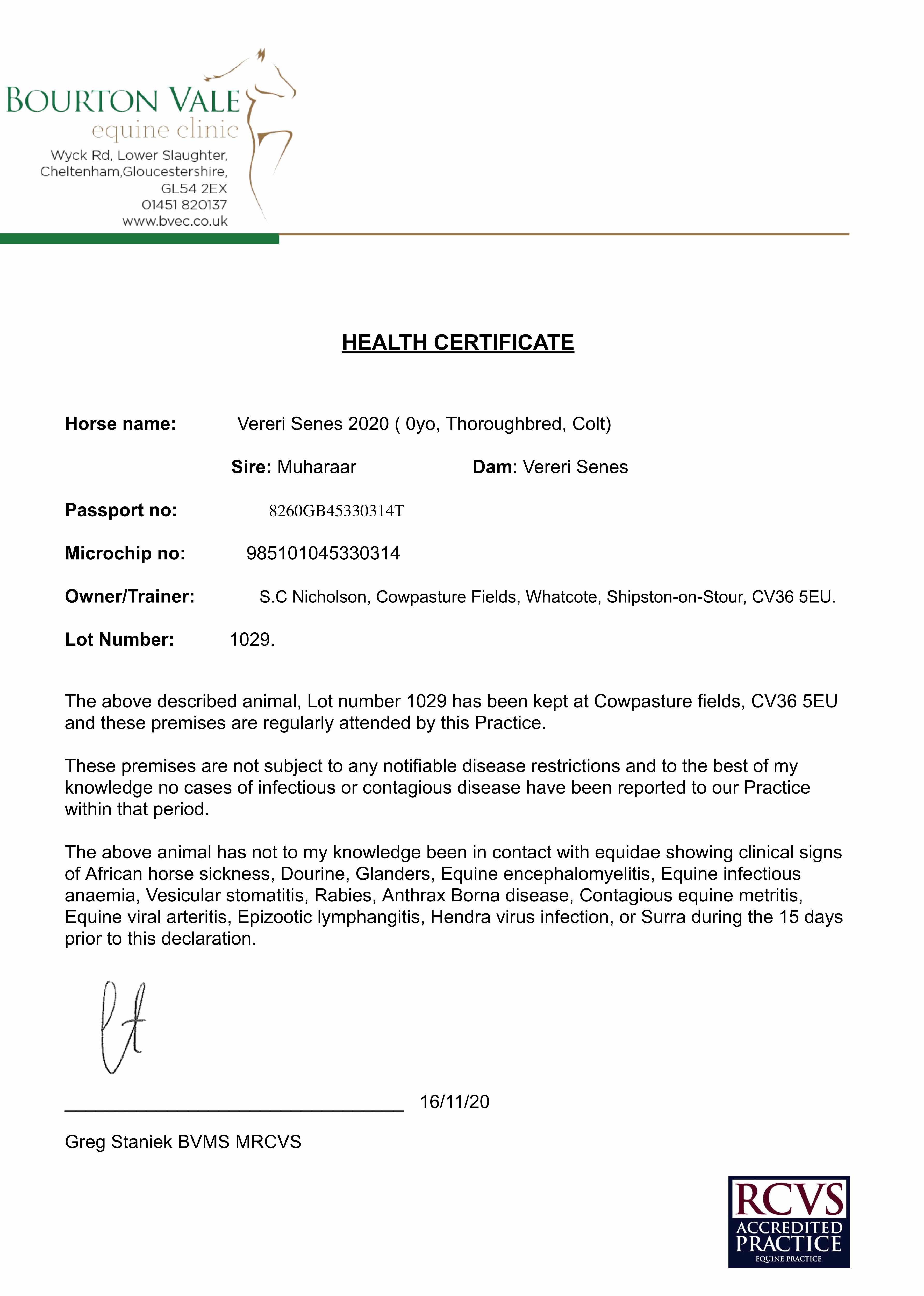 Consignor: Whatcote Farm Stud