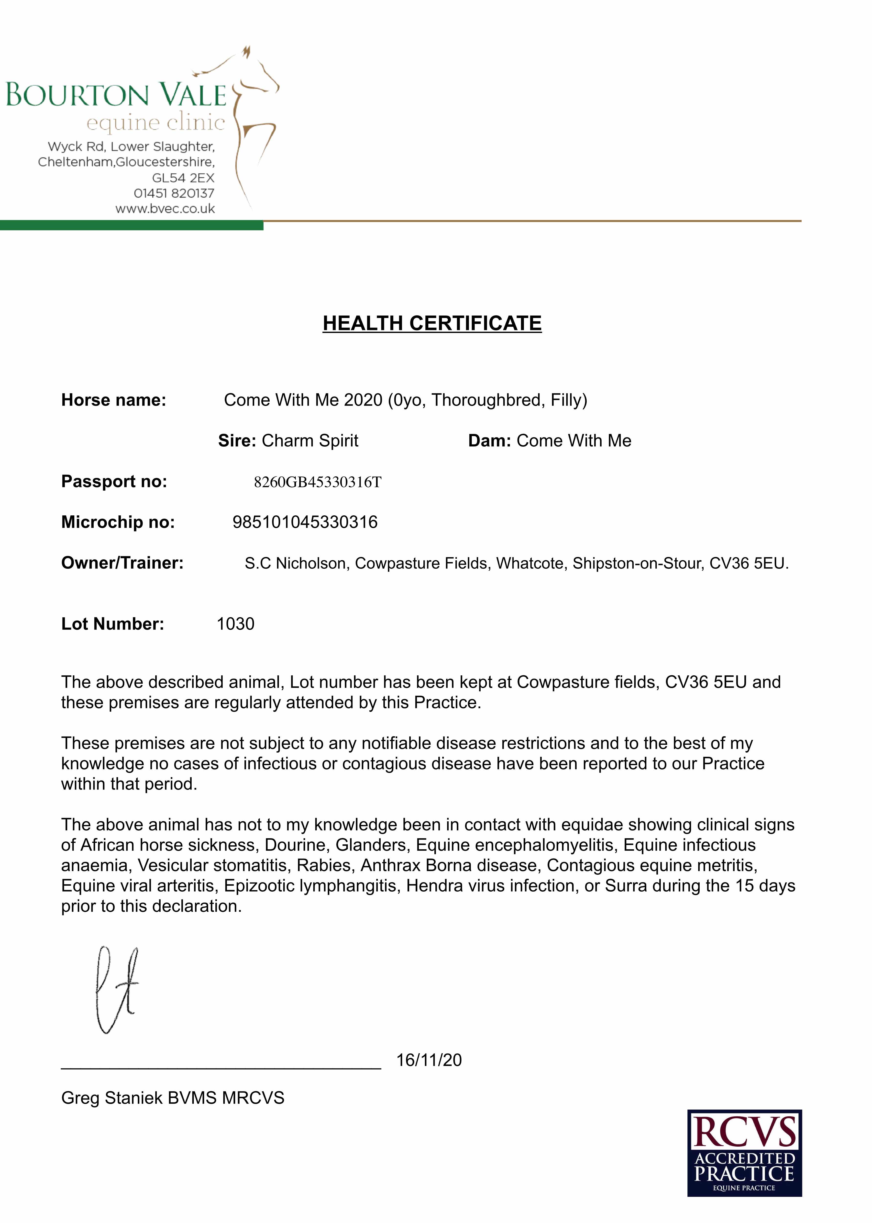 Consignor: Whatcote Farm Stud