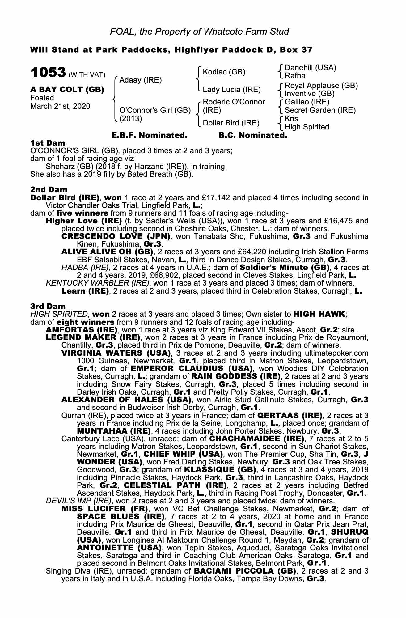 Consignor: Whatcote Farm Stud