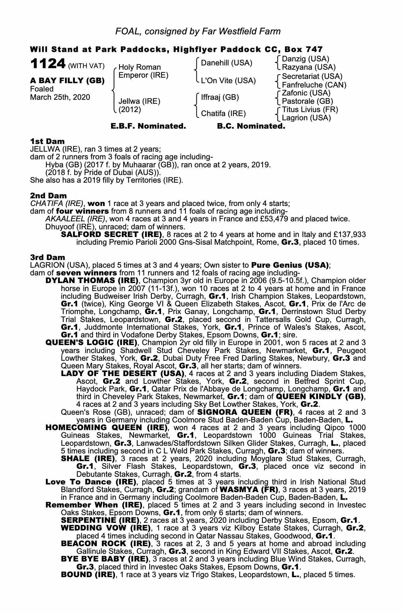 December Foal Sale 2019 lot 1179 F. by Territories (IRE) 2019, Far Westfield Farm=>Vendor 800 gns