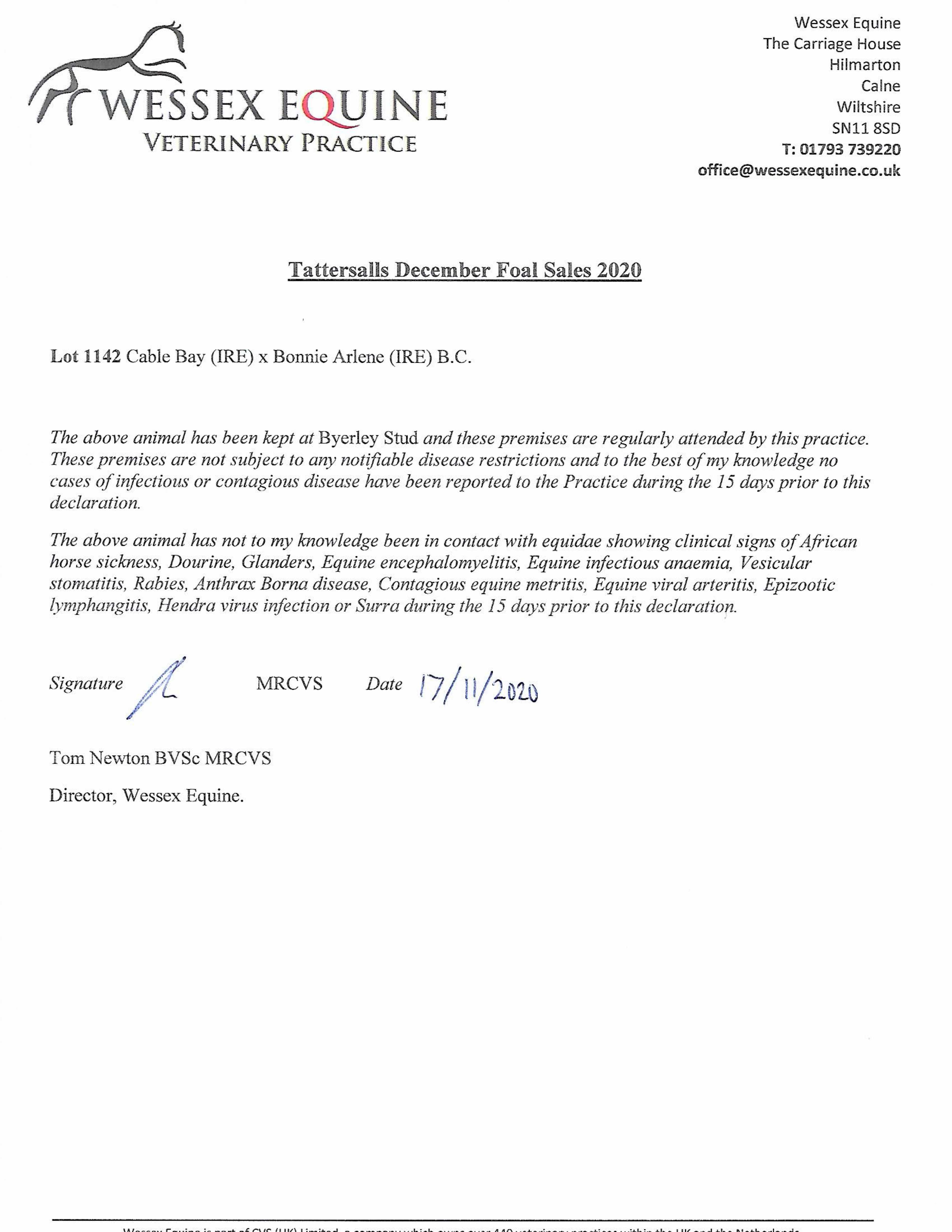 December Foal Sale 2021 lot 294 F. by Land Force (IRE) 2021, Byerley Stud=>Diana Mottershead 8,000 gns