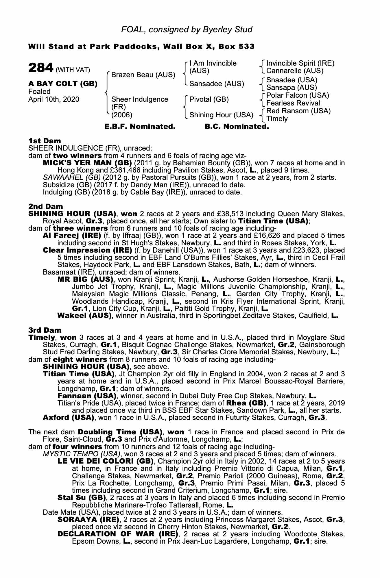 Consignor: Byerley Stud