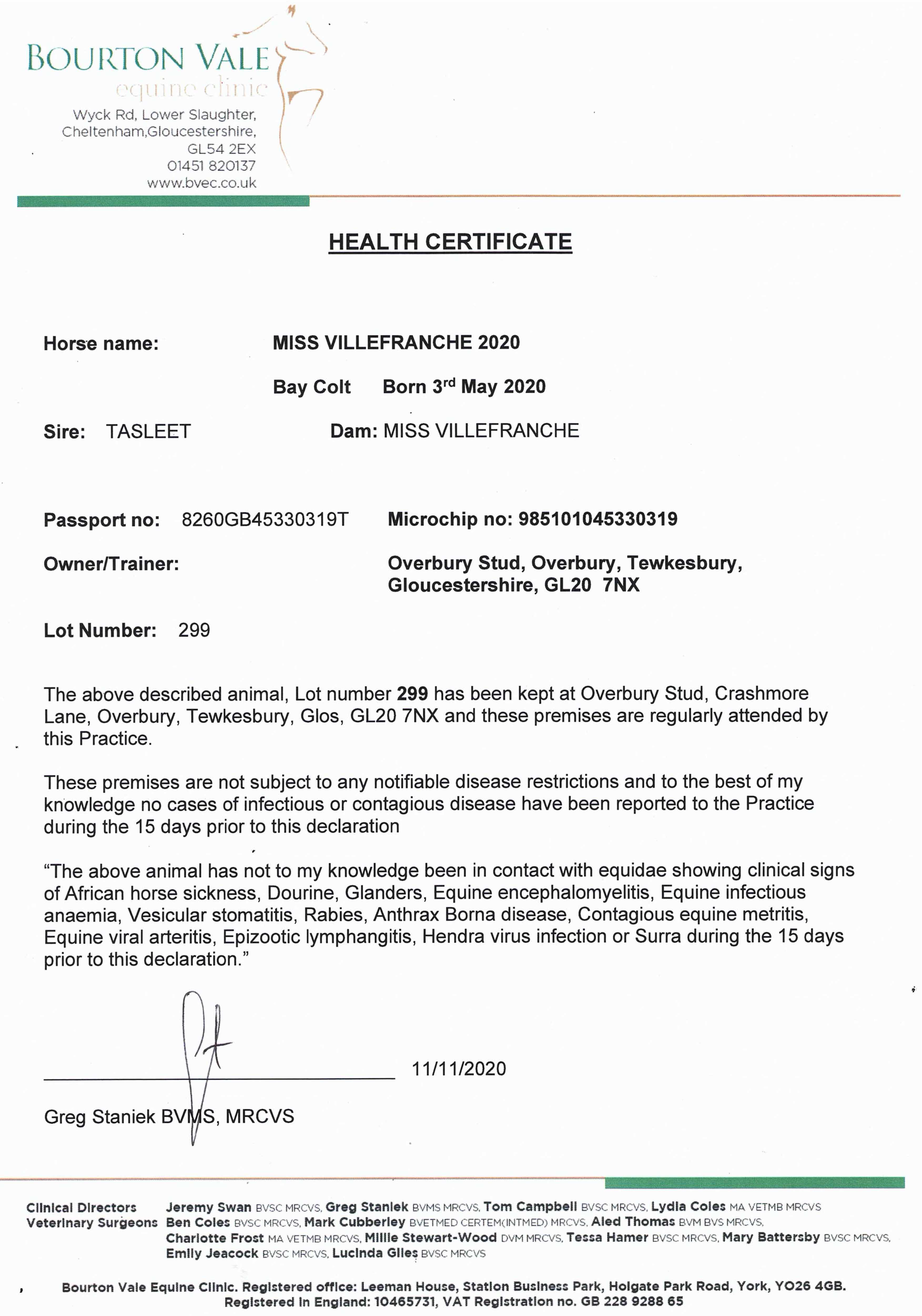 December Mare Sale 2020 lot 2185 Sur Mer (GB) (F. by Equiano (FR)), Jamie Railton (Agent)=>Nick Bell 15,000 gns
