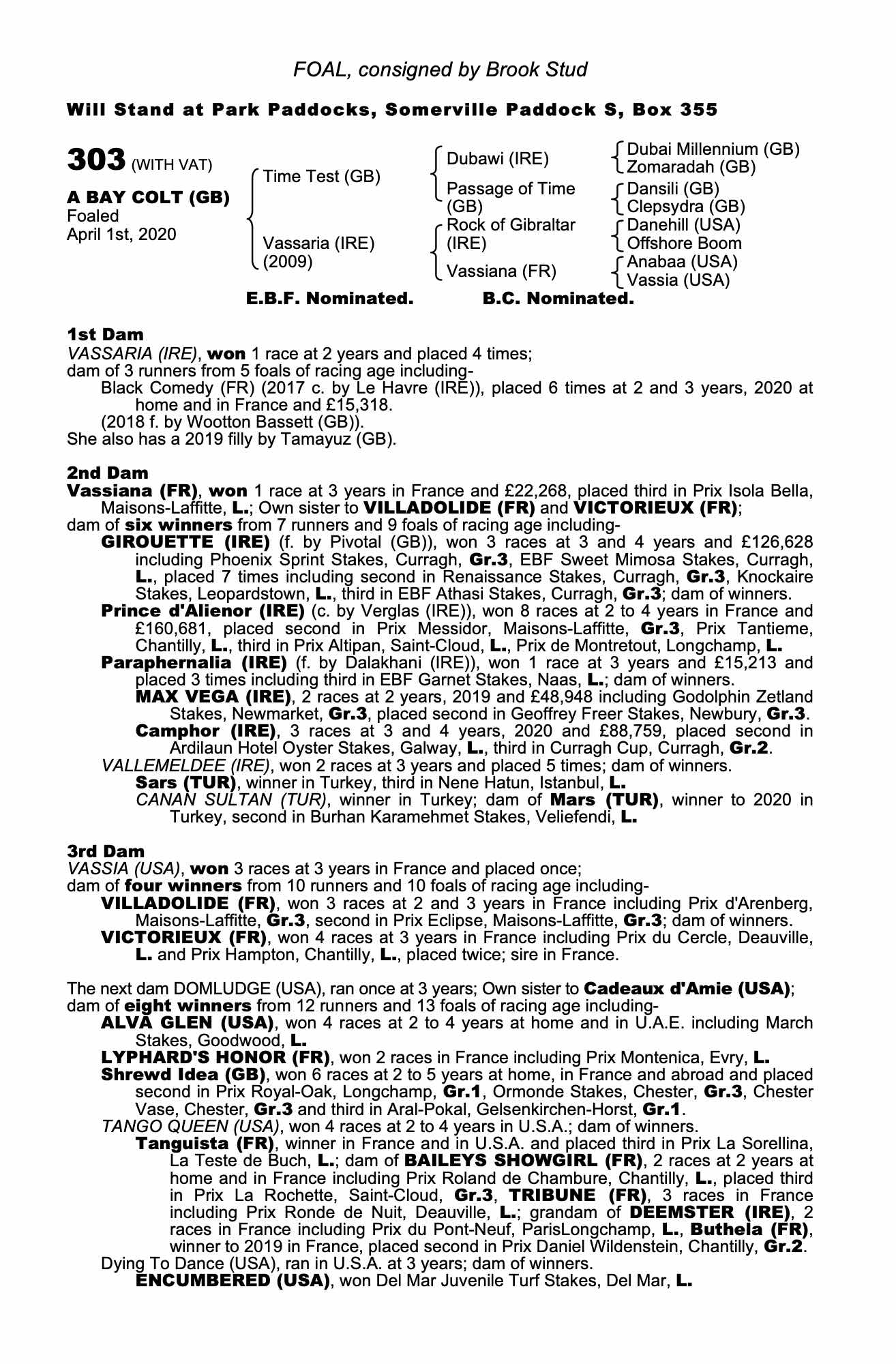 December Yearling Sale 2019 lot 31 F. by Wootton Bassett (GB) 2018, Skyline Thoroughbreds=>Glending Stables 19,000 gns