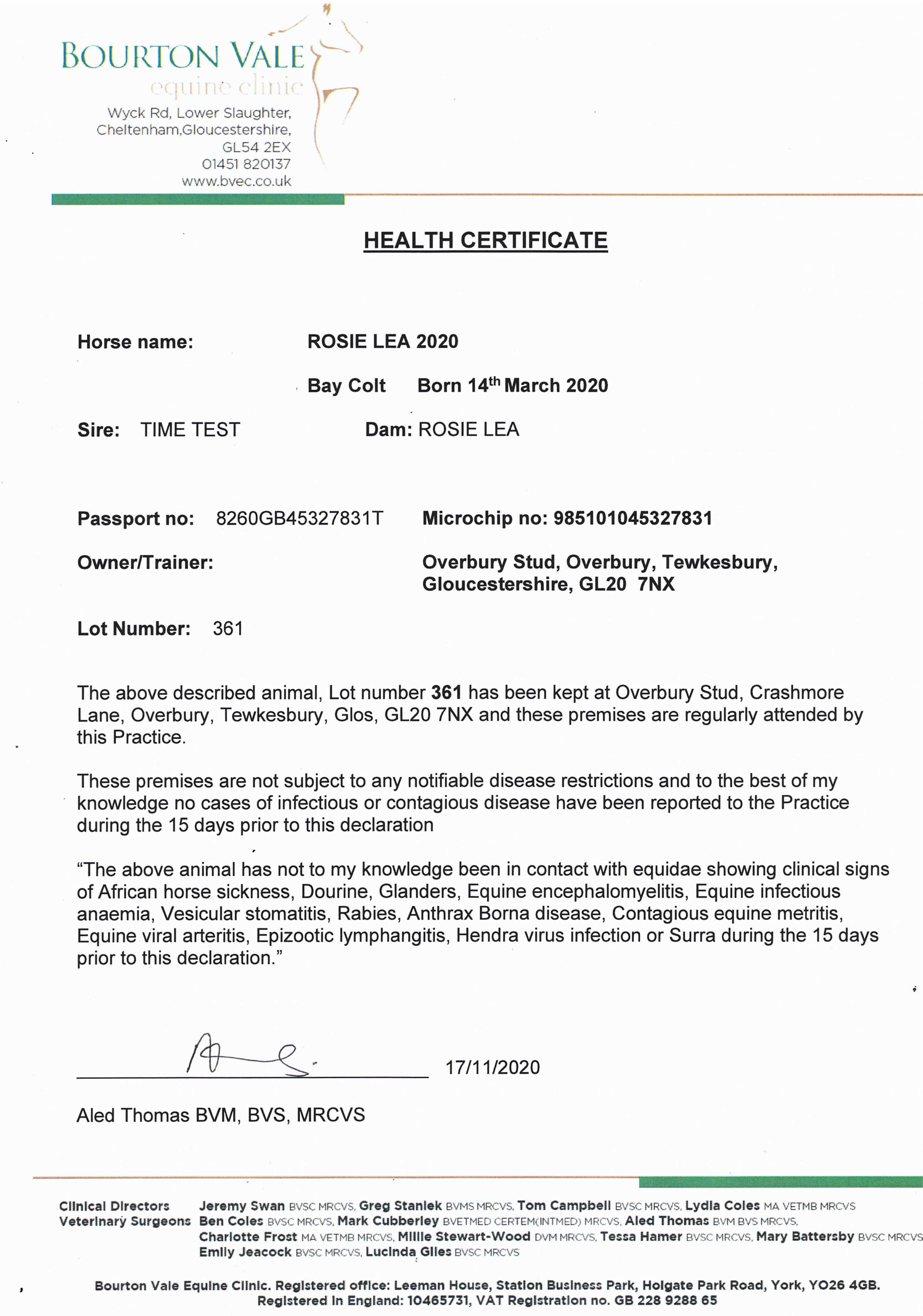 Consignor: Overbury Stud