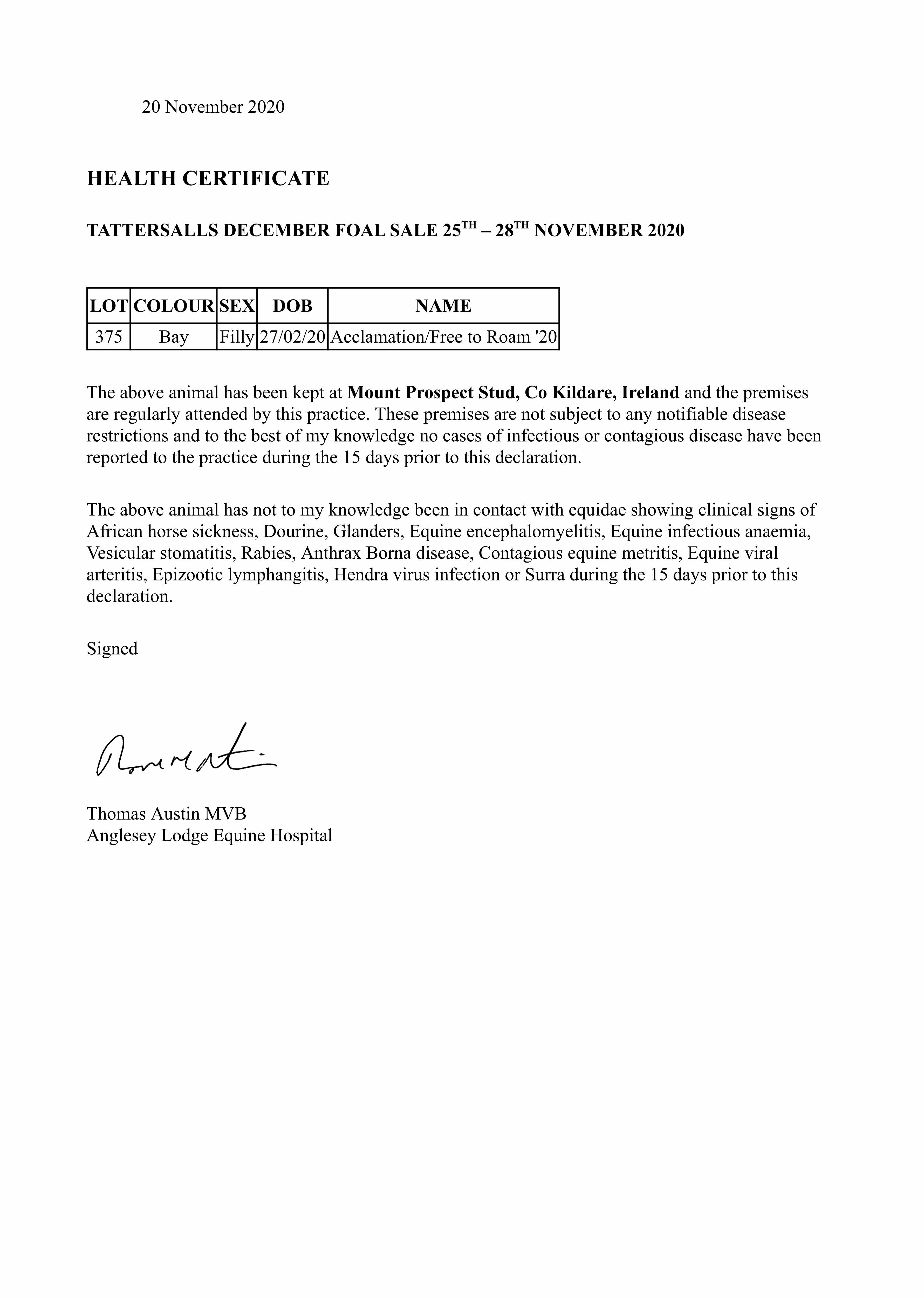 Ascot Yearling Sale 2020 lot 21 F. by Iffraaj (GB) 2019, Brooklodge Farm, Ireland=>Warrenstown Stud 10,000 gns