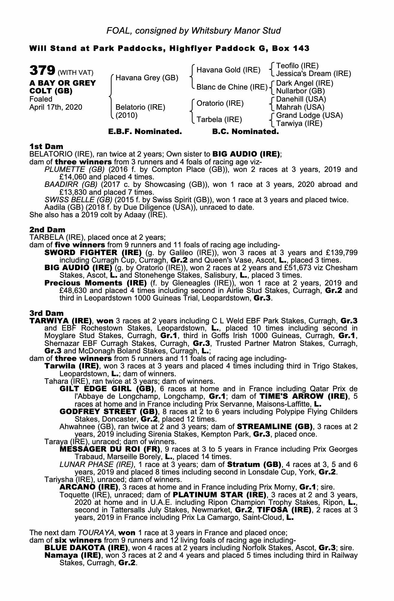 February Sale 2020 lot 344 Baadirr (GB) (C. by Showcasing (GB)), Somerville Lodge Ltd. (W. Haggas), Agent=>Enrique Fernandez De Vega 40,000 gns