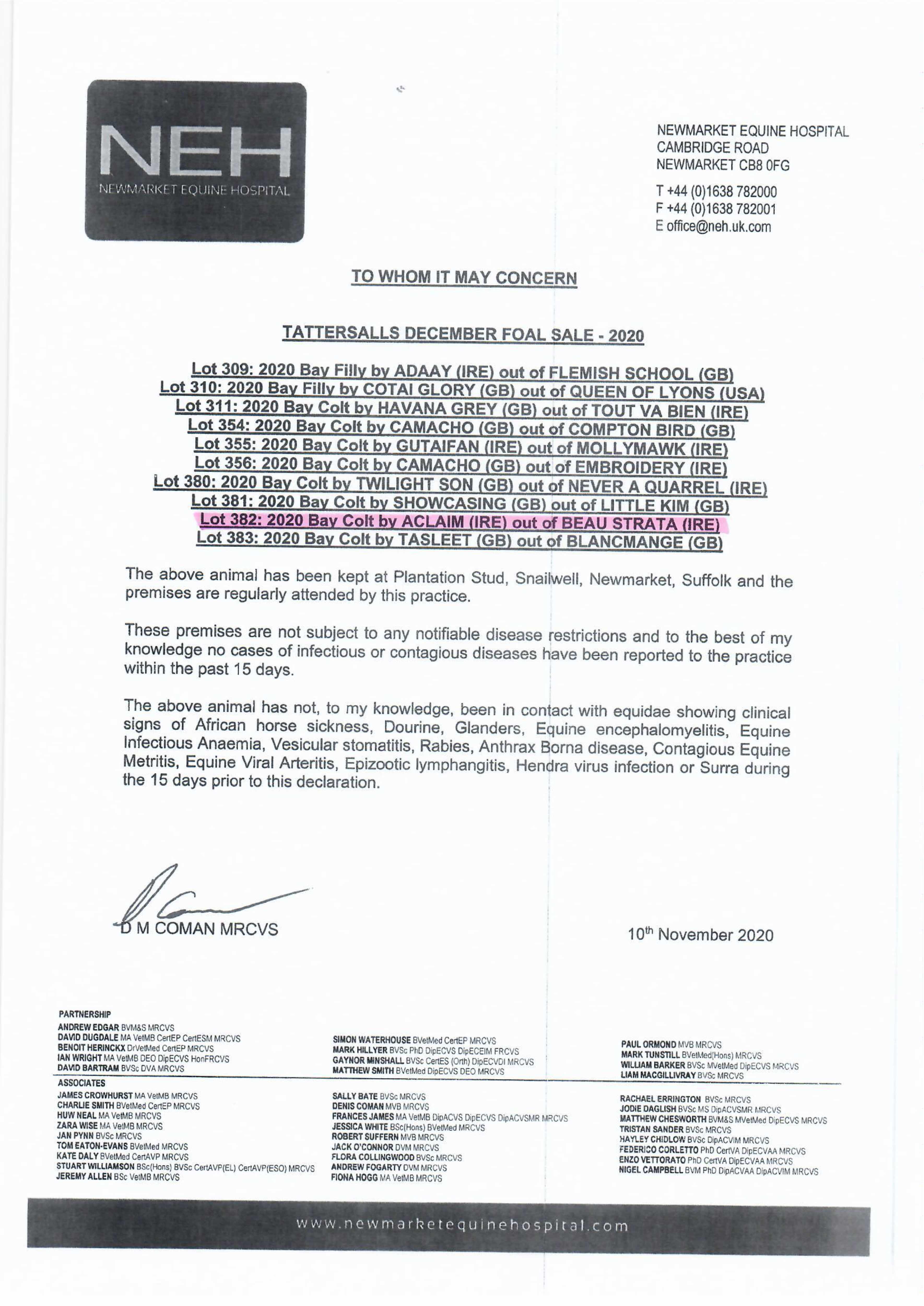 December Foal Sale 2019 lot 1197 C. 2019, Plantation Stud=>Vendor 16,000 gns