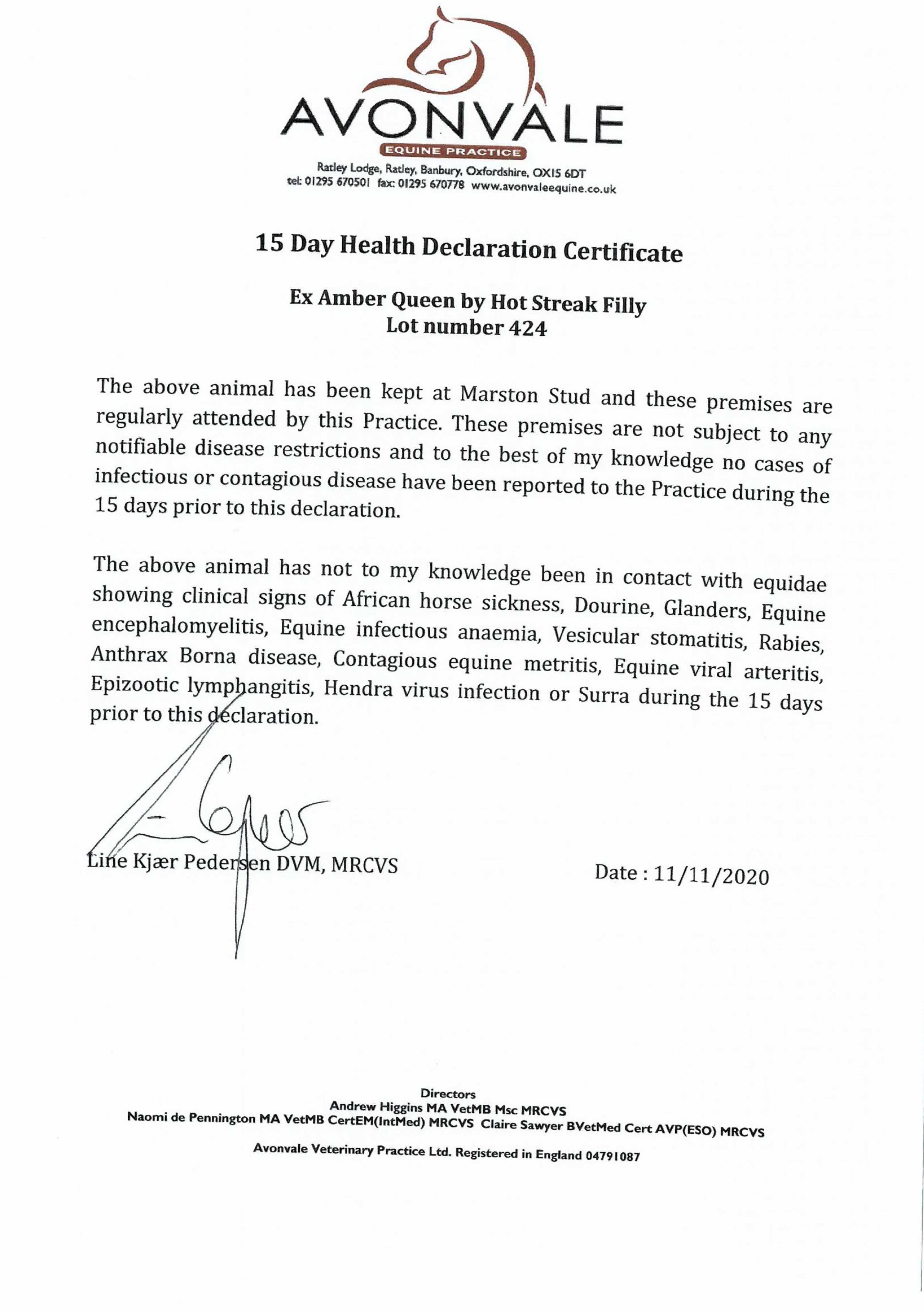 December Foal Sale 2018 lot 615 F. by Cable Bay (IRE) 2018, Norelands Stud, Ireland=>Lot Not Sold