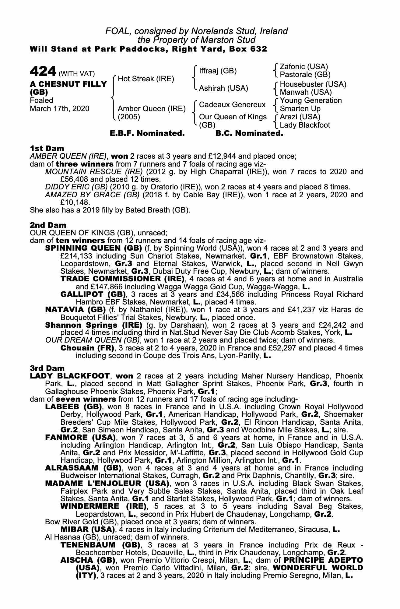 December Foal Sale 2019 lot 649 F. by Bated Breath (GB) 2019, Norelands Stud, Ireland=>Ballinvana House Stud 17,000 gns