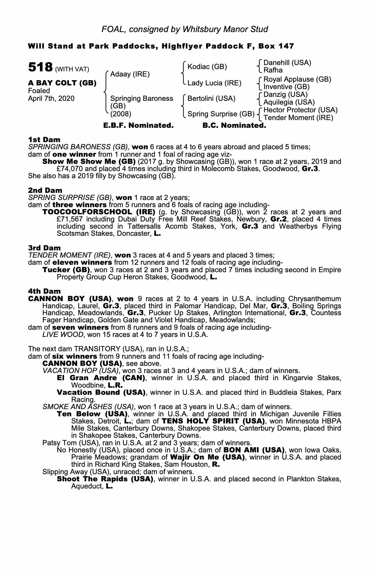 July Sale 2023 lot 864, Baroda Stud, Ireland=>Ali Aldihani 5,000 gns