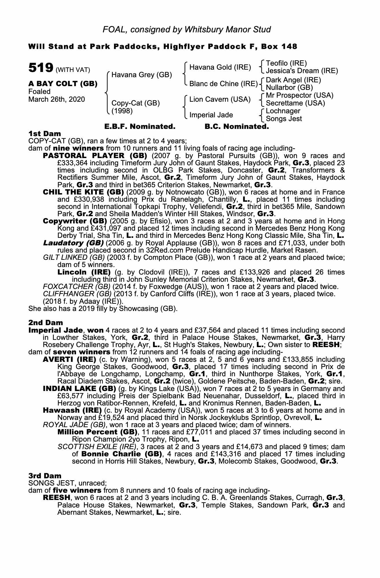 October Yearling Sale, Book 2 2020 lot 694 F. by Showcasing (GB) 2019, Whitsbury Manor Stud=>Vendor 40,000 gns