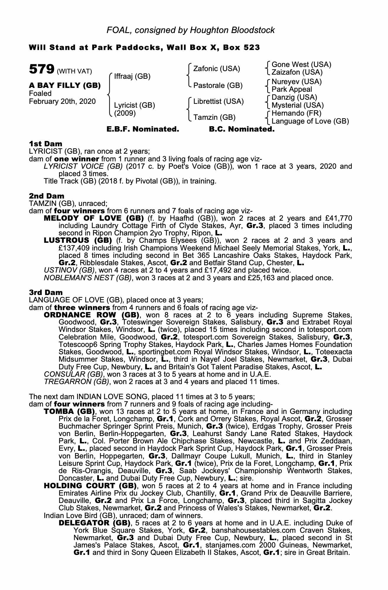 July Sale 2020 lot 656 Lyricist Voice (GB) (C. by Poet's Voice (GB)), Prestige Place (M. Botti)=>Vendor 17,000 gns