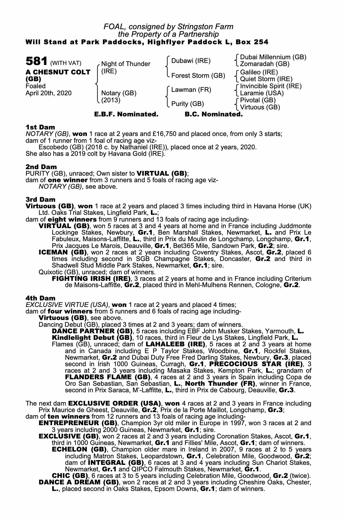 December Foal Sale 2018 lot 1282 C. by Nathaniel (IRE) 2018, Jamie Railton (Agent)=>3 Amigos Bloodstock 27,000 gns
