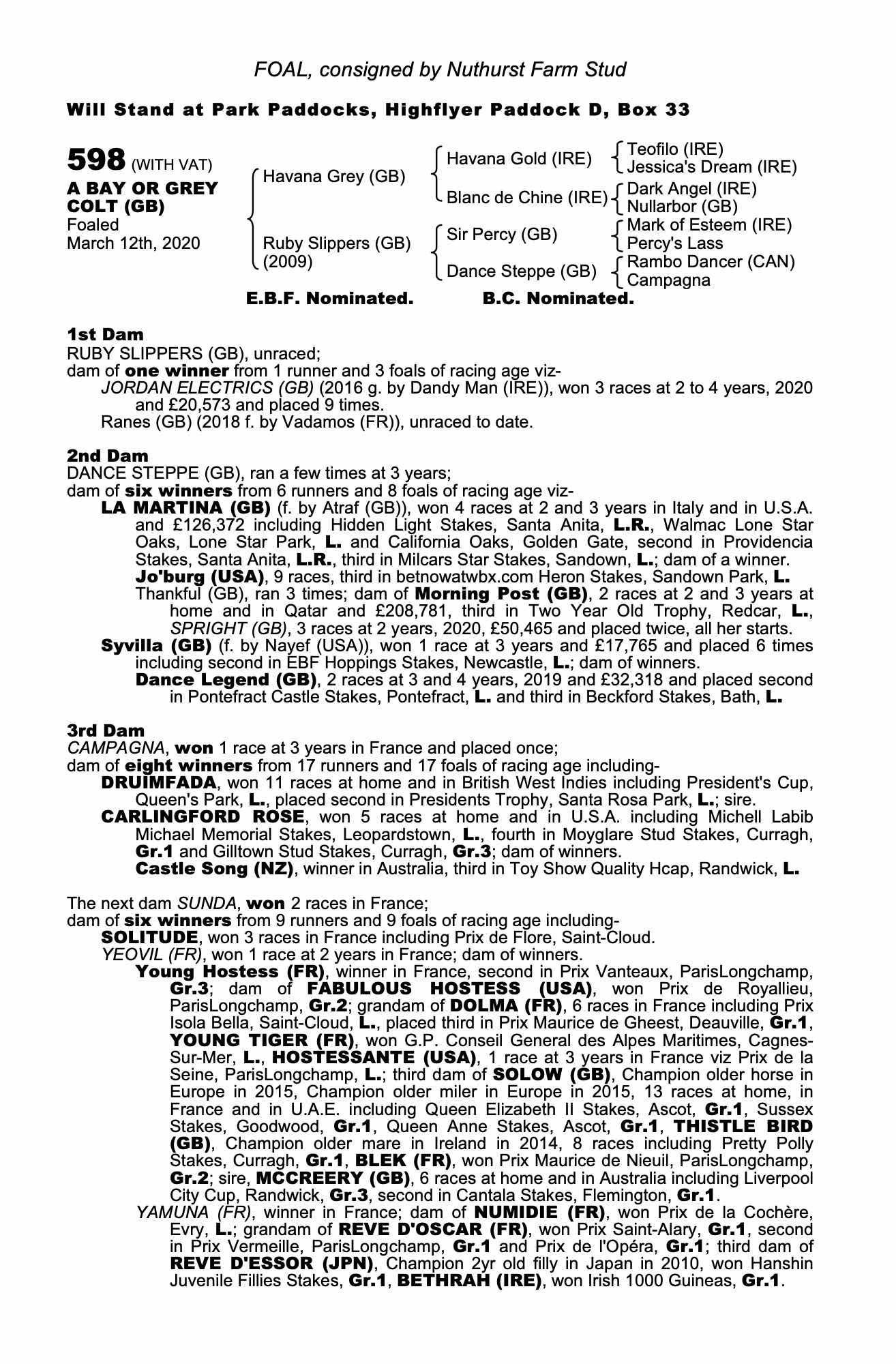 Consignor: Nuthurst Farm Stud