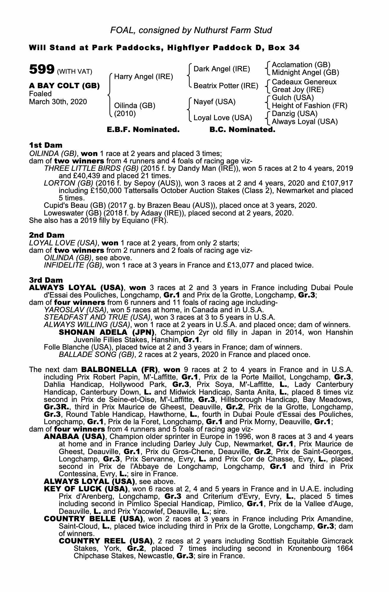 October Yearling Sale, Book 3 2020 lot 1849 F. by Equiano (FR) 2019, Nuthurst Farm Stud=>Mark Walford Racing 3,000 gns