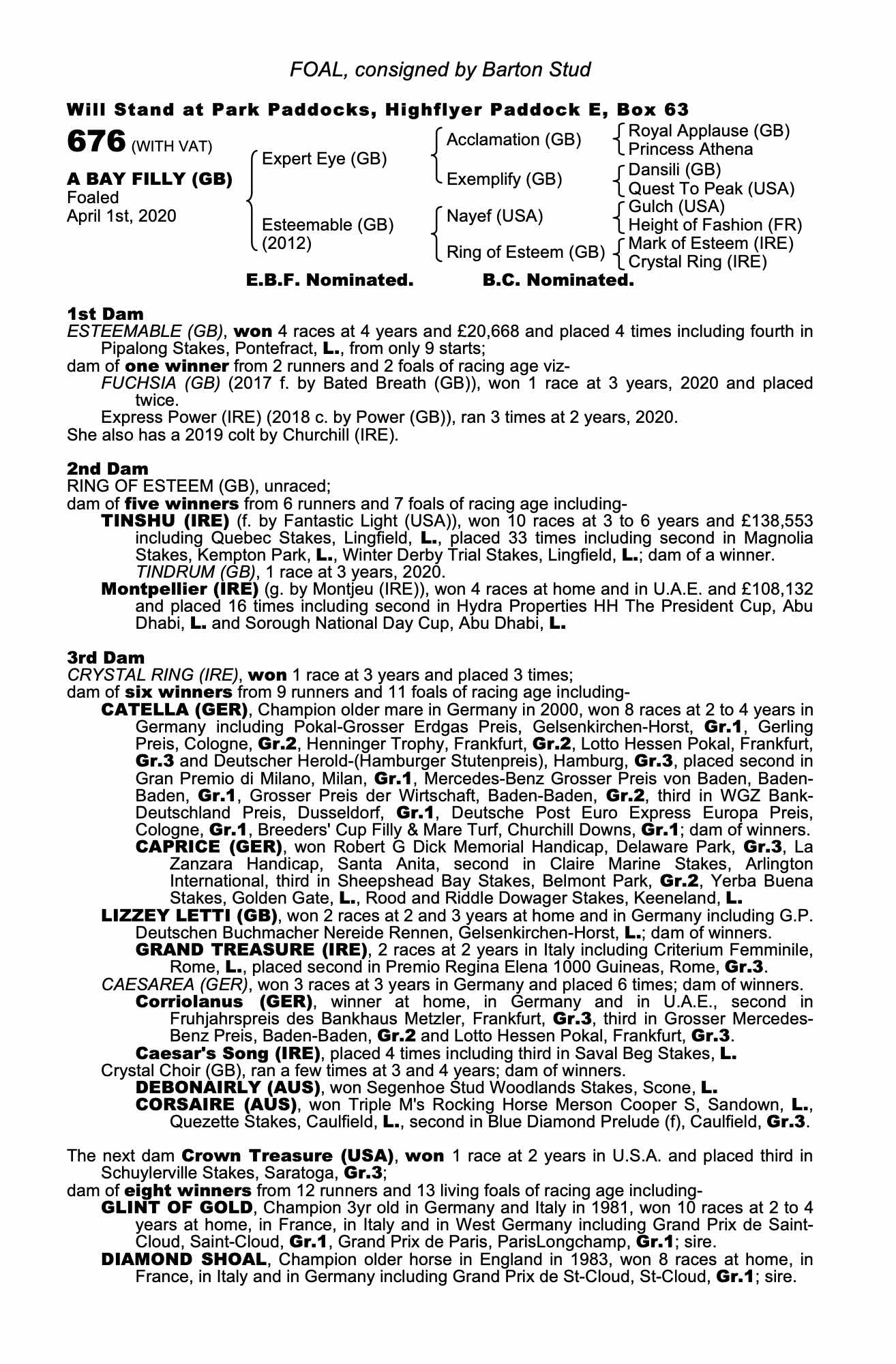 August Sale 2020 lot 727 Fuchsia (GB) (F. by Bated Breath (GB)), Pegasus Stables (J. Fanshawe)=>P & F Monfort Sarl 8,000 gns