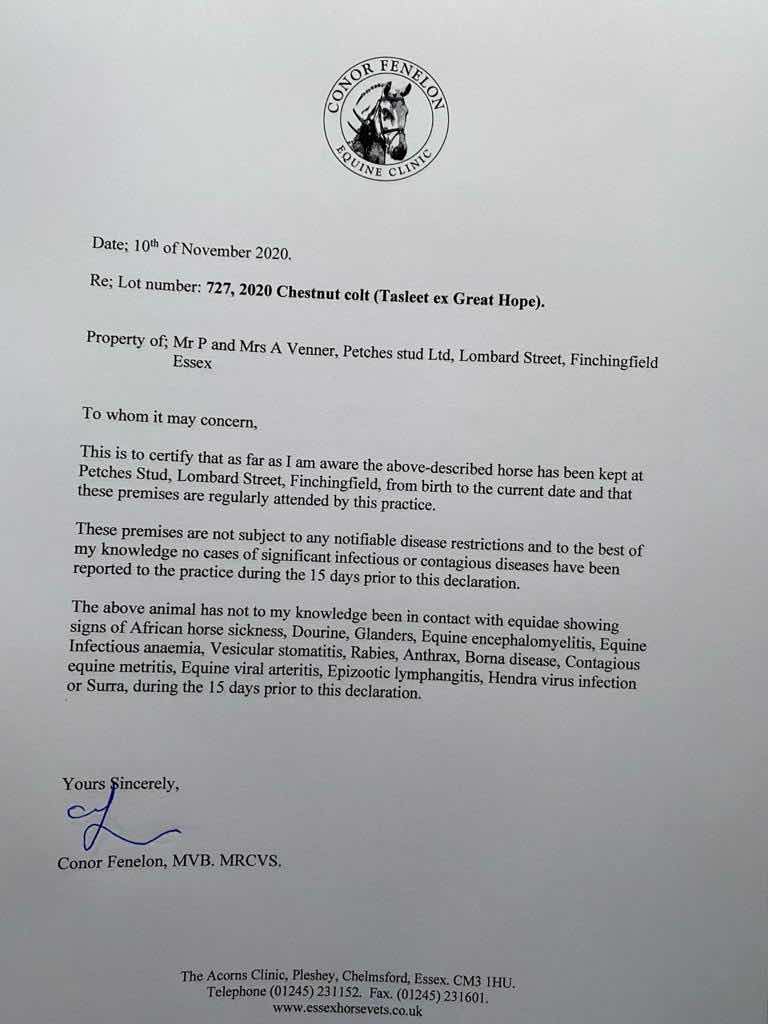 December Foal Sale 2021 lot 596 C. by Masar (IRE) 2021, Petches Farm=>Fairway Partners 80,000 gns