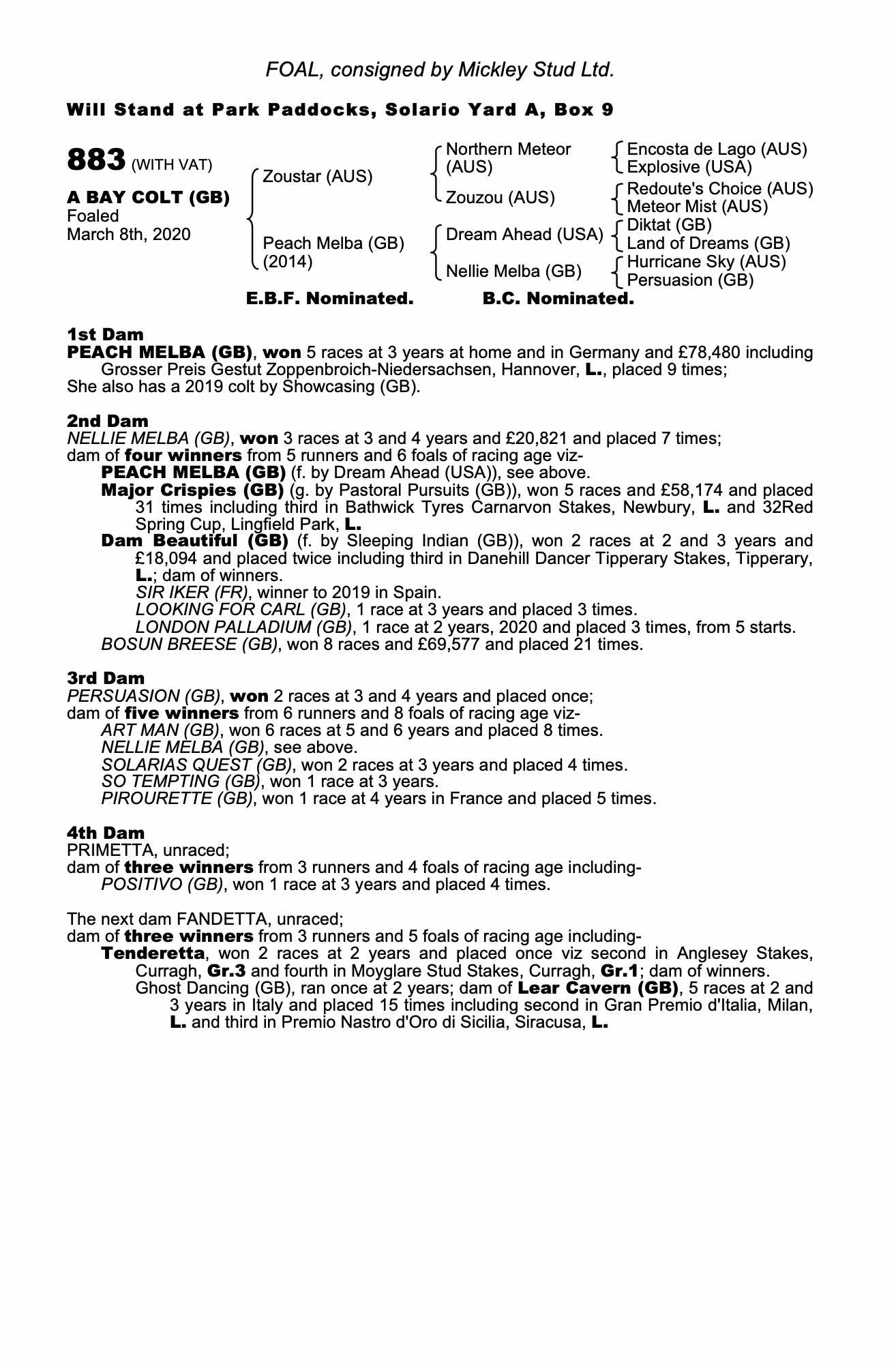 Consignor: Mickley Stud Ltd.