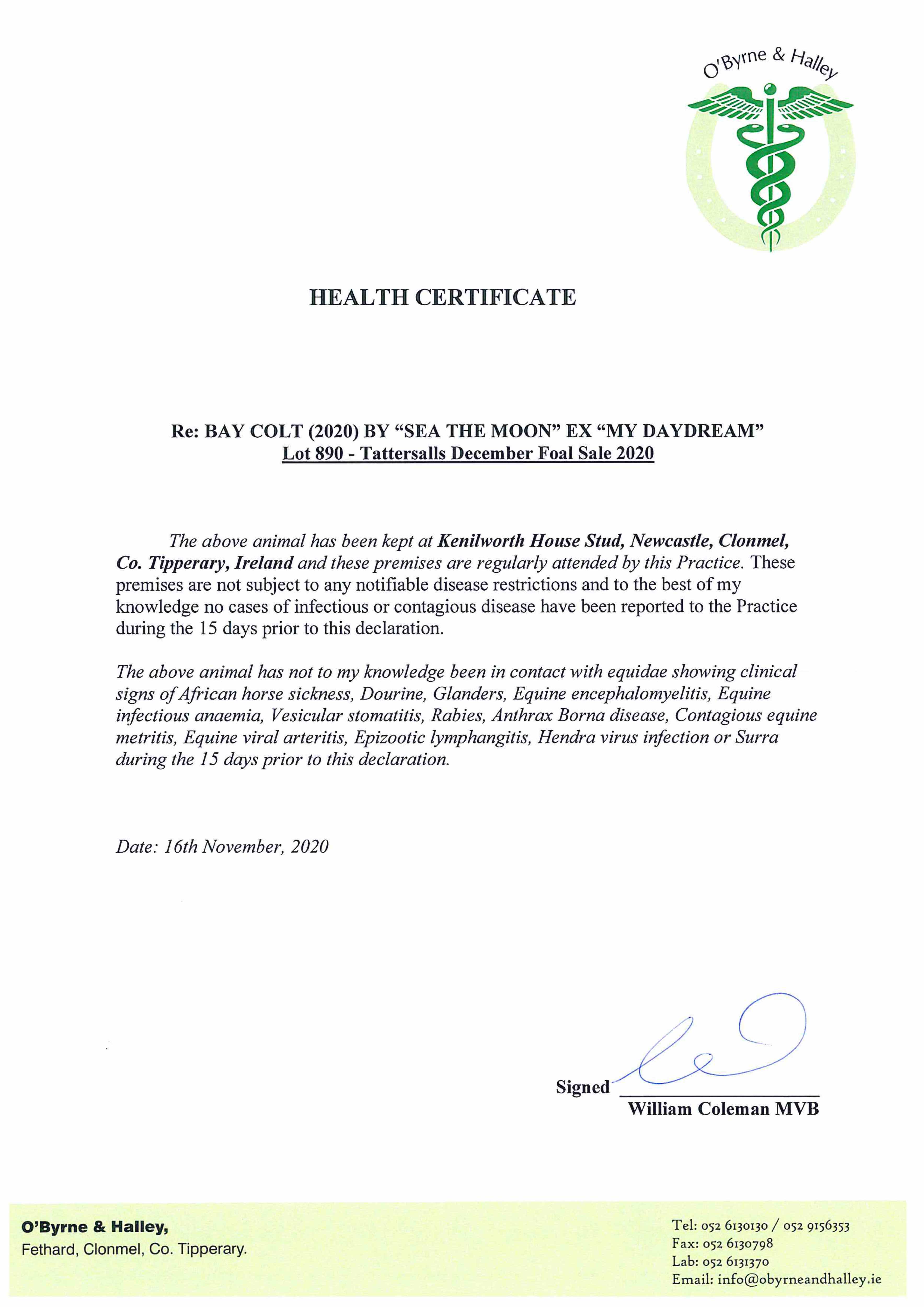 Location: Kenilworth House Stud, Clonmel, Co. Tipperary