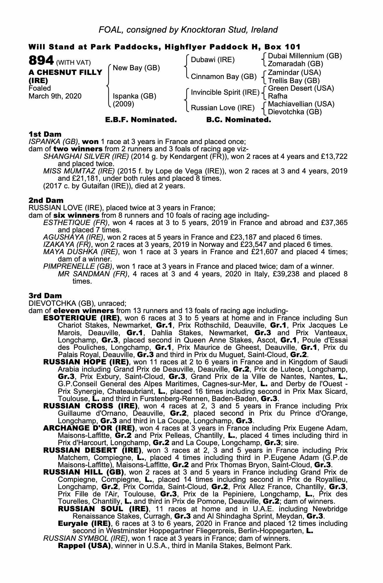 December Mare Sale 2019 lot 2336 Miss Mumtaz (IRE) (F. by Lope de Vega (IRE)), Dominion Racing Stables (I. Williams)=>Oliver St Lawrence Bloodstock 800 gns