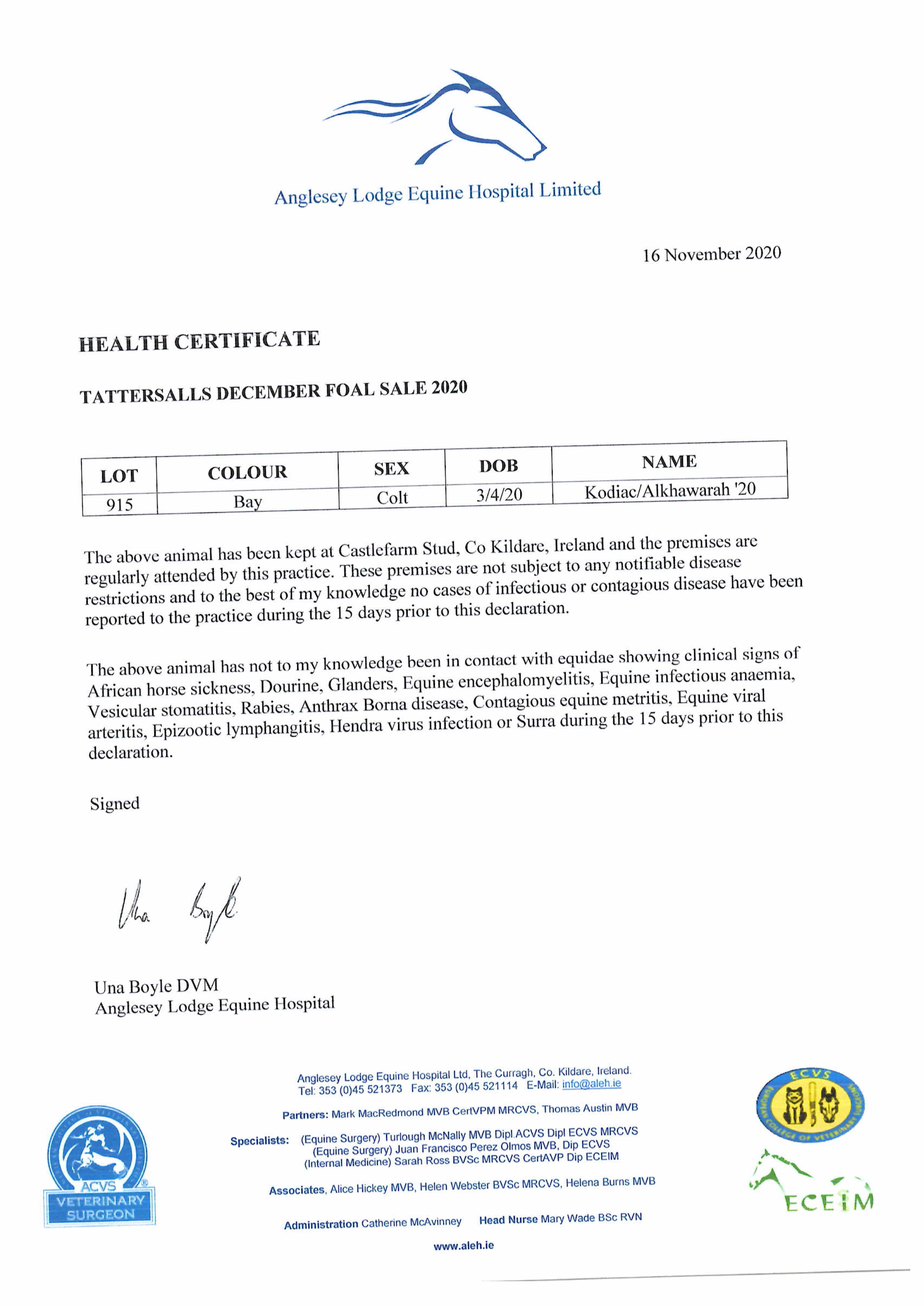Consignor: Castlefarm Stud, Ireland (Agent)