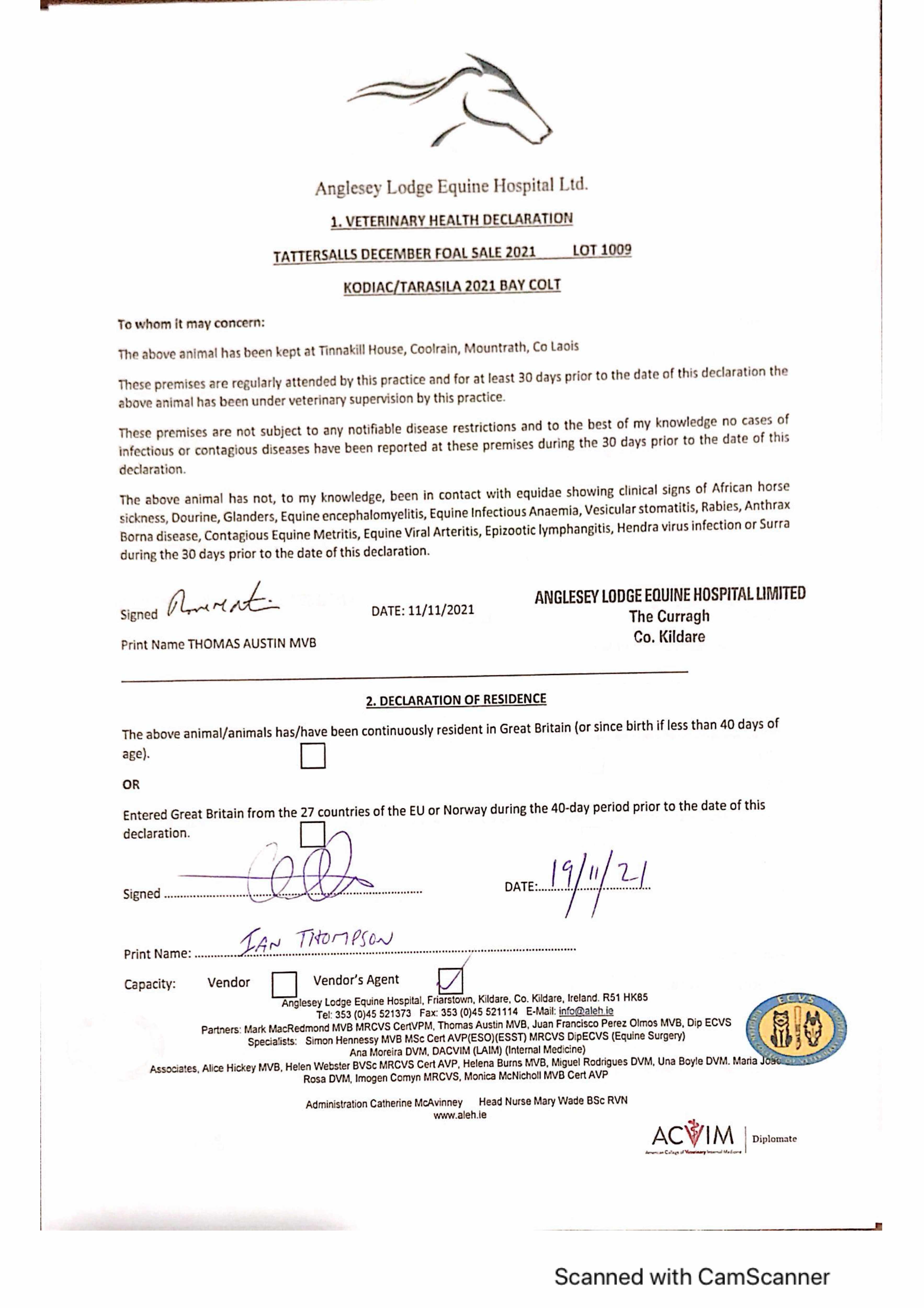 Consignor: Tinnakill House, Ireland