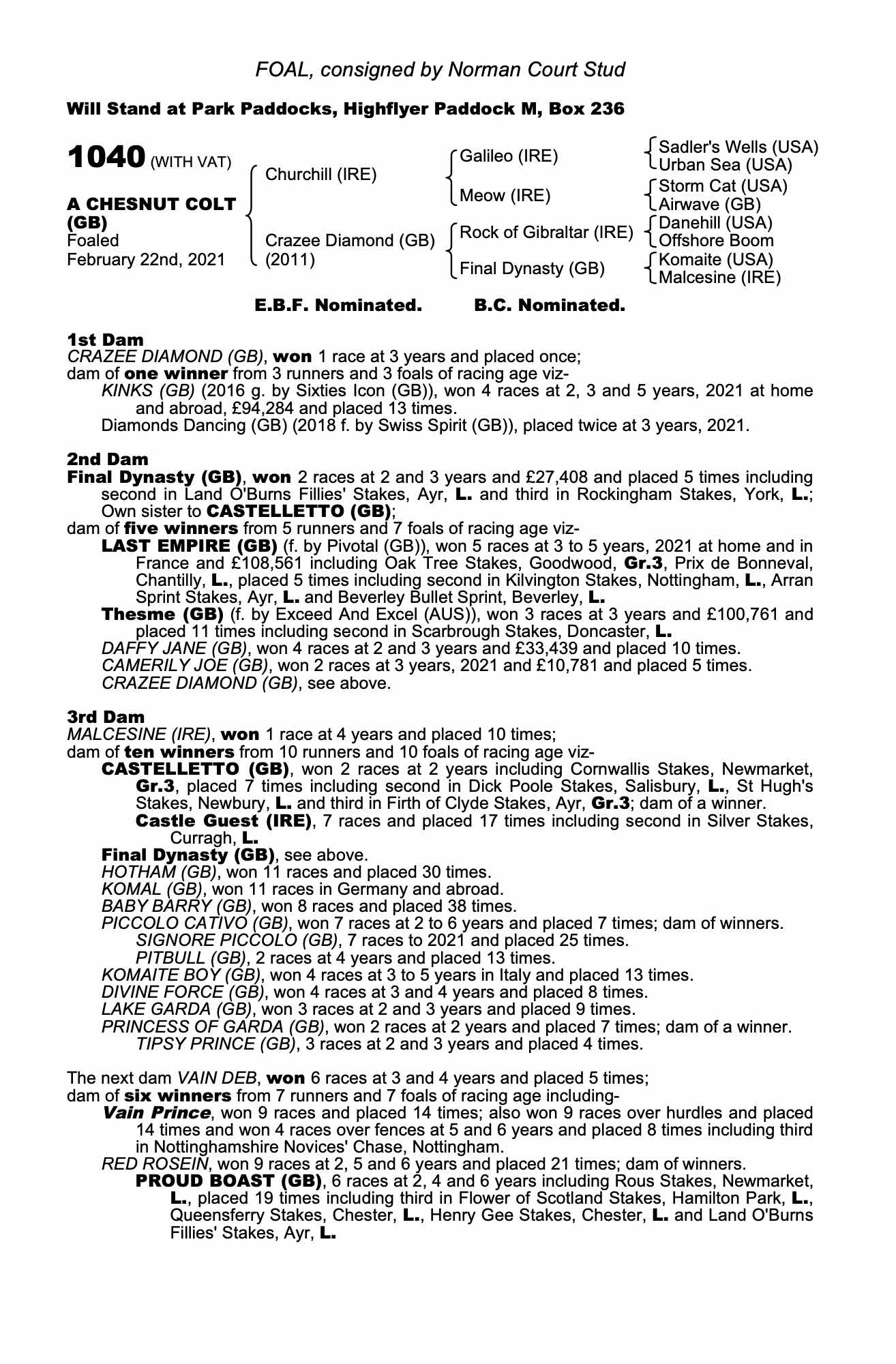 Sapphire Sale 2022 lot 185 Diamonds Dancing (GB) (M. by Swiss Spirit (GB)), Rathasker Stud=>Lot Not Sold