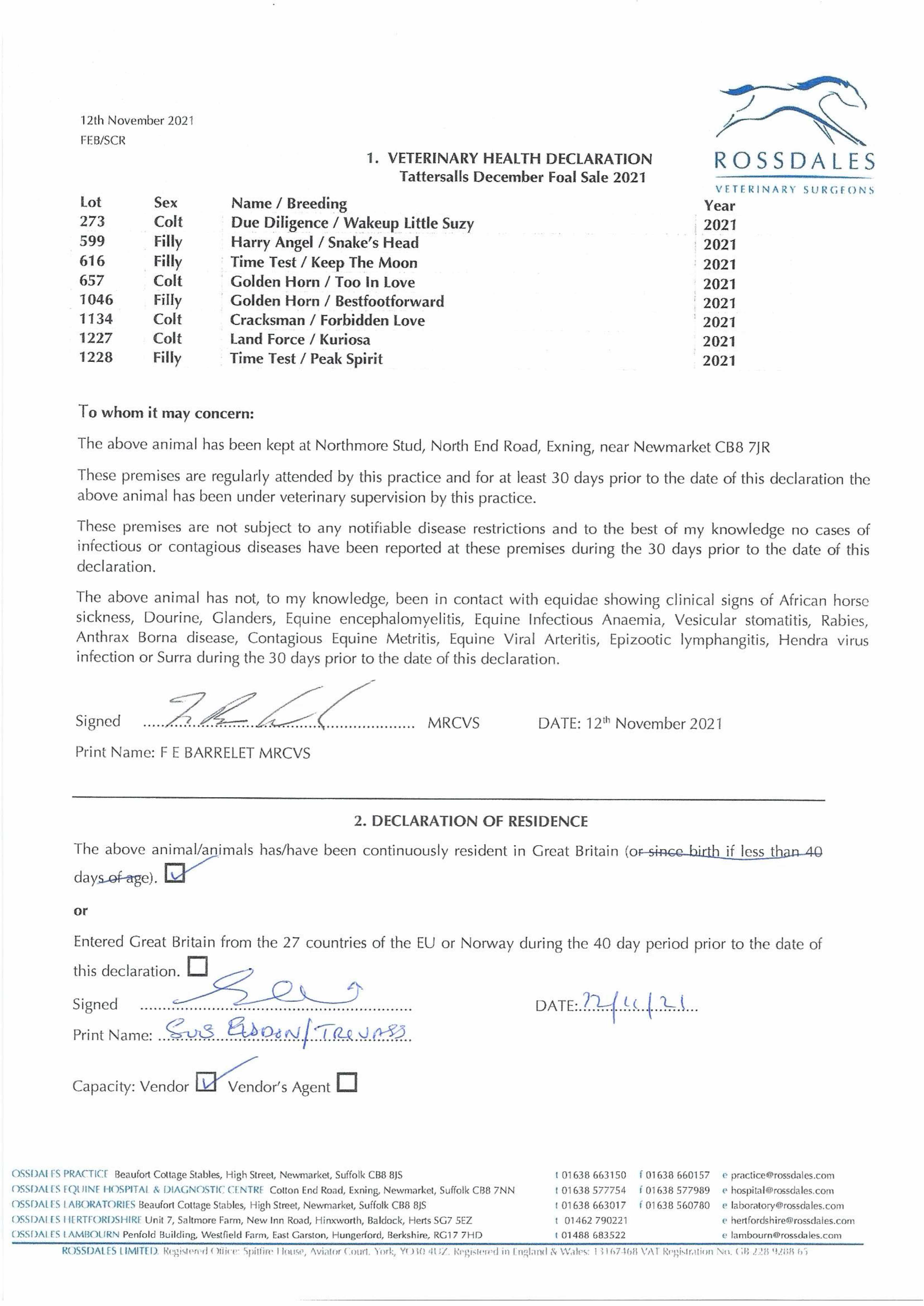 Consignor: Northmore Stud