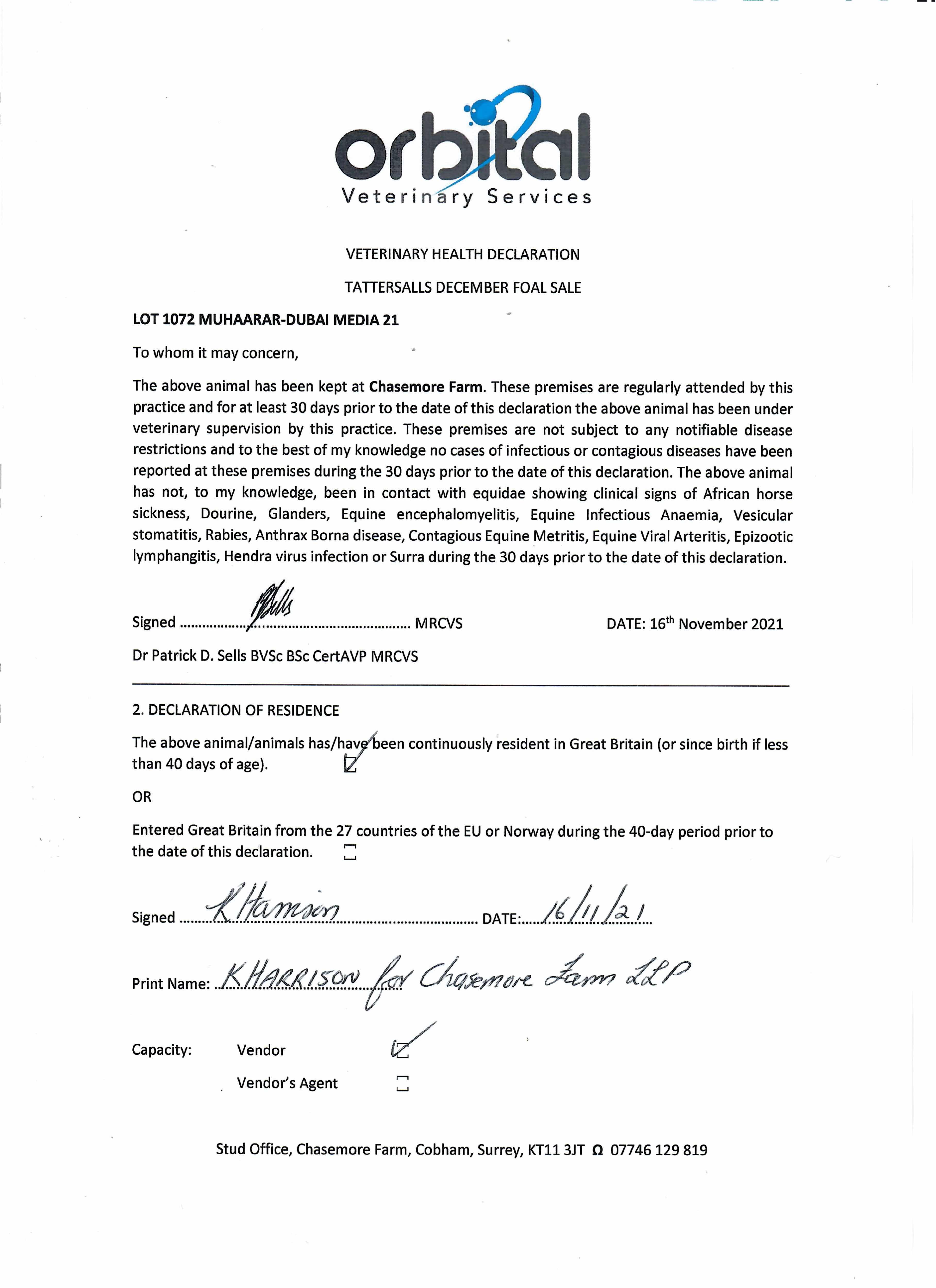 December Mare Sale 2019 lot 2021 Kahramanah (GB) (M. by Zamindar (USA)), Nafferty Stud, Ireland=>Muhammad Qasim 6,000 gns