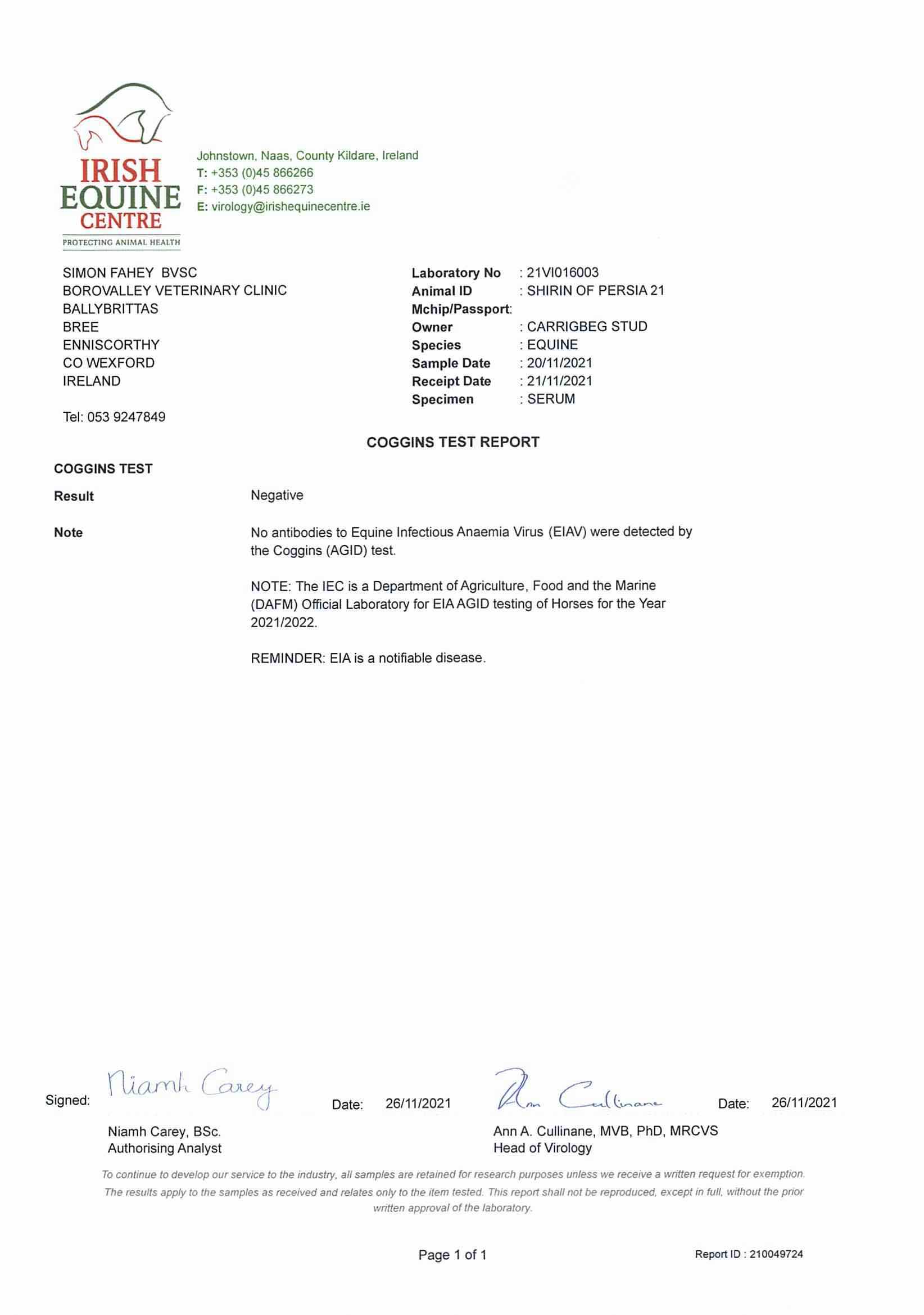 Consignor: Carrigbeg & Felley Priory Studs