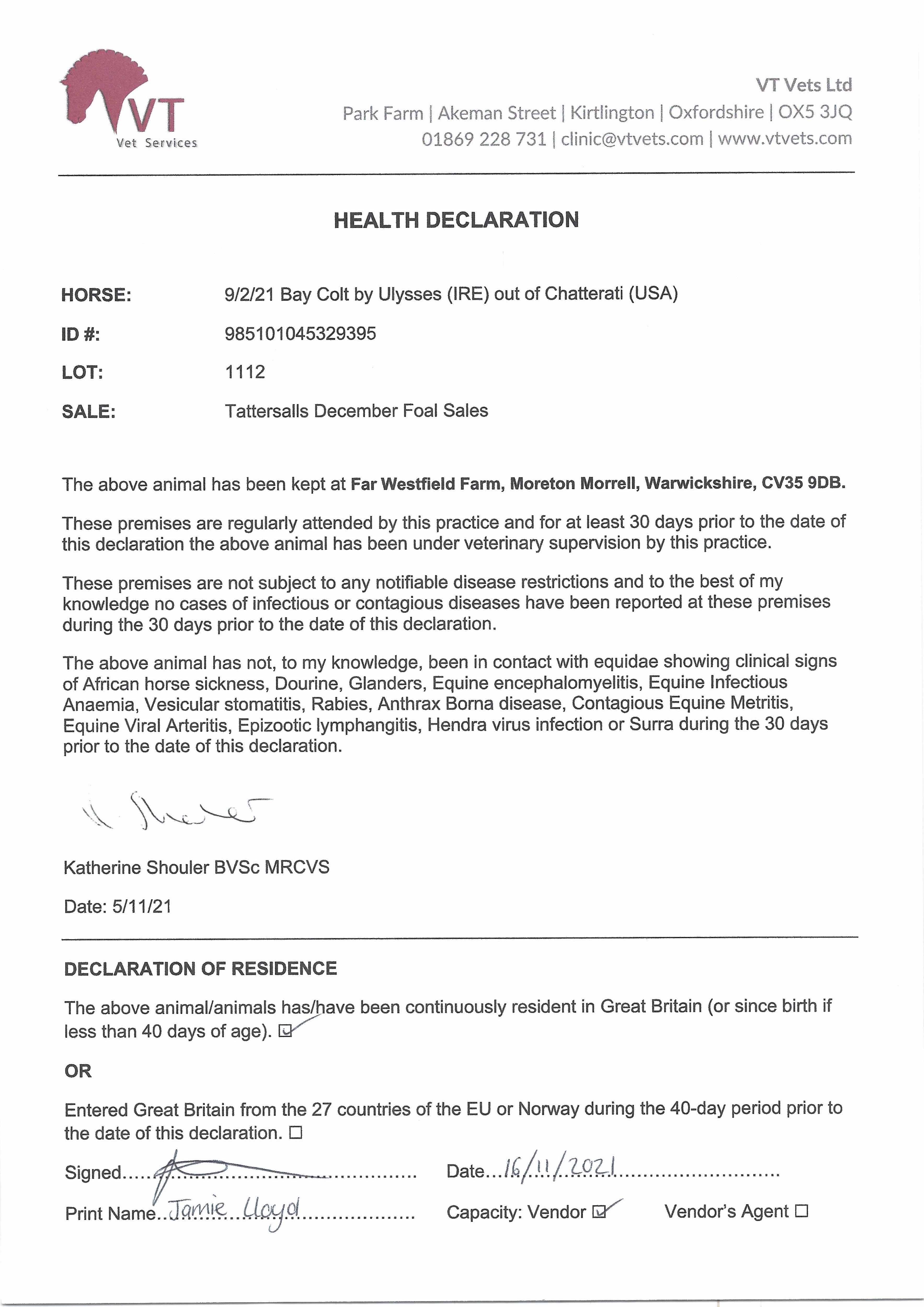 December Foal Sale 2019 lot 617 C. 2019, Voute Sales Ltd. (Agent)=>Flaxman Stables Ireland 55,000 gns
