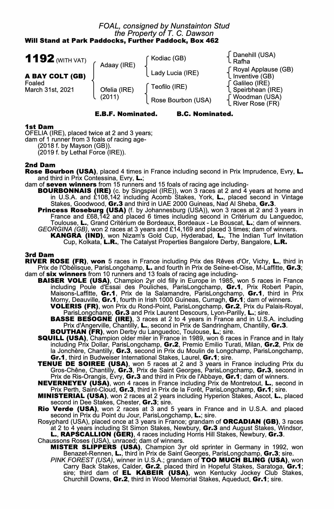 December Foal Sale 2024 lot 1100 C. by Sergei Prokofiev (CAN) 2024, Nunstainton Stud=>Lot Not Sold 7,500 gns