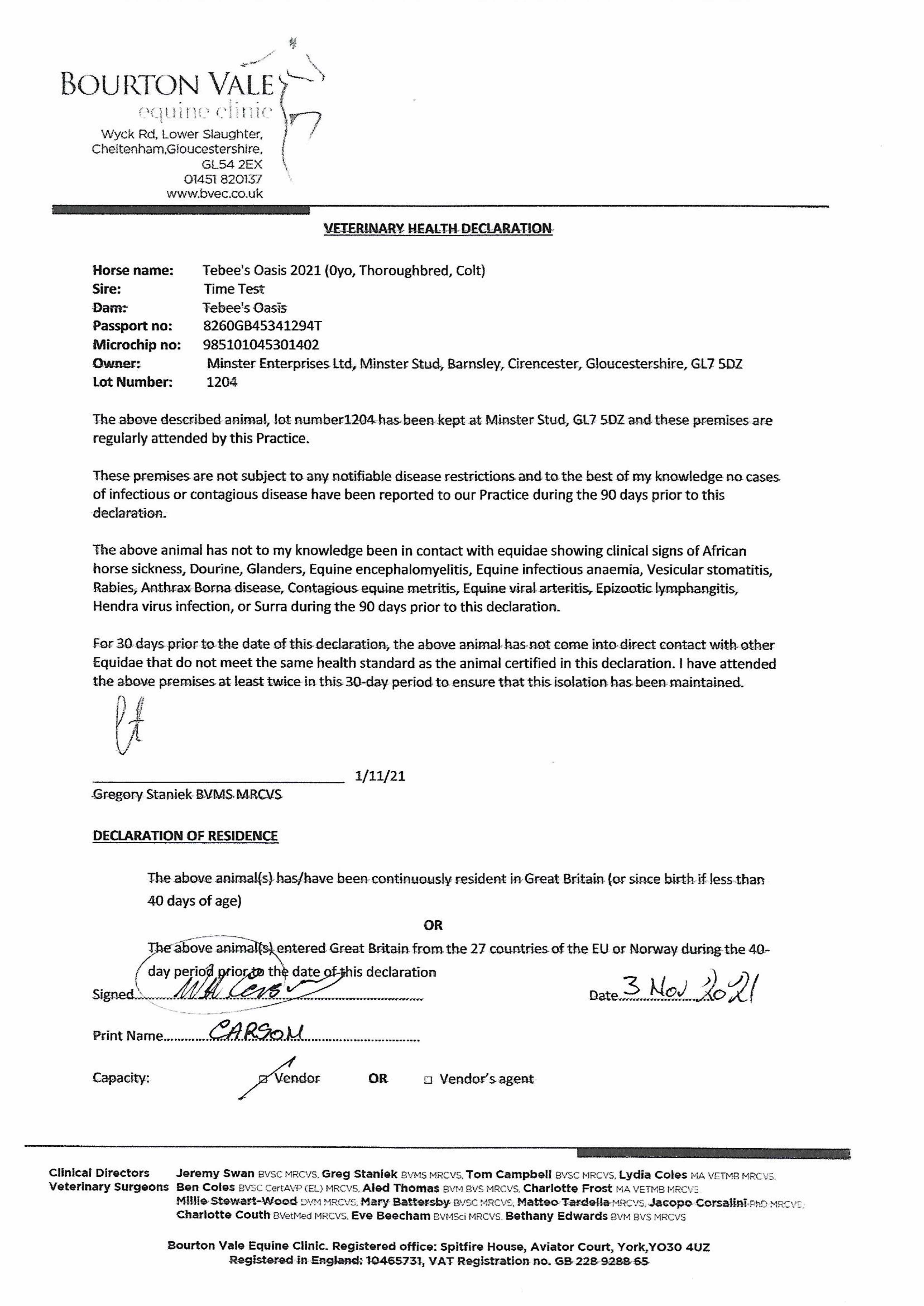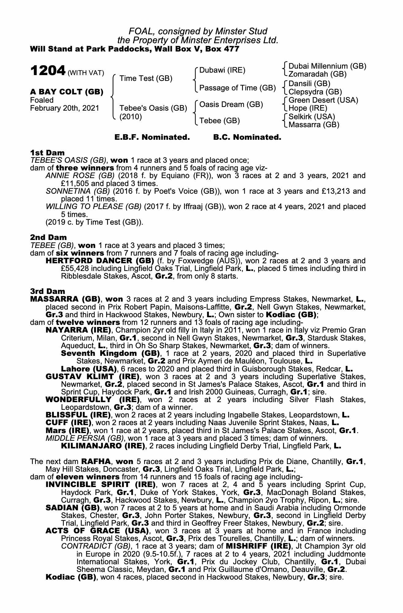 Contact: Mr W H Carson ✆ 07503659506 ✉ info@minsterstud.co.uk