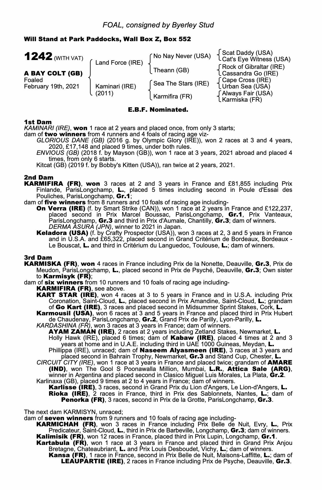Contact: Ian Bradbury ✆ 07901148170 ✉ ian.bradbury@byerleystud.co.uk