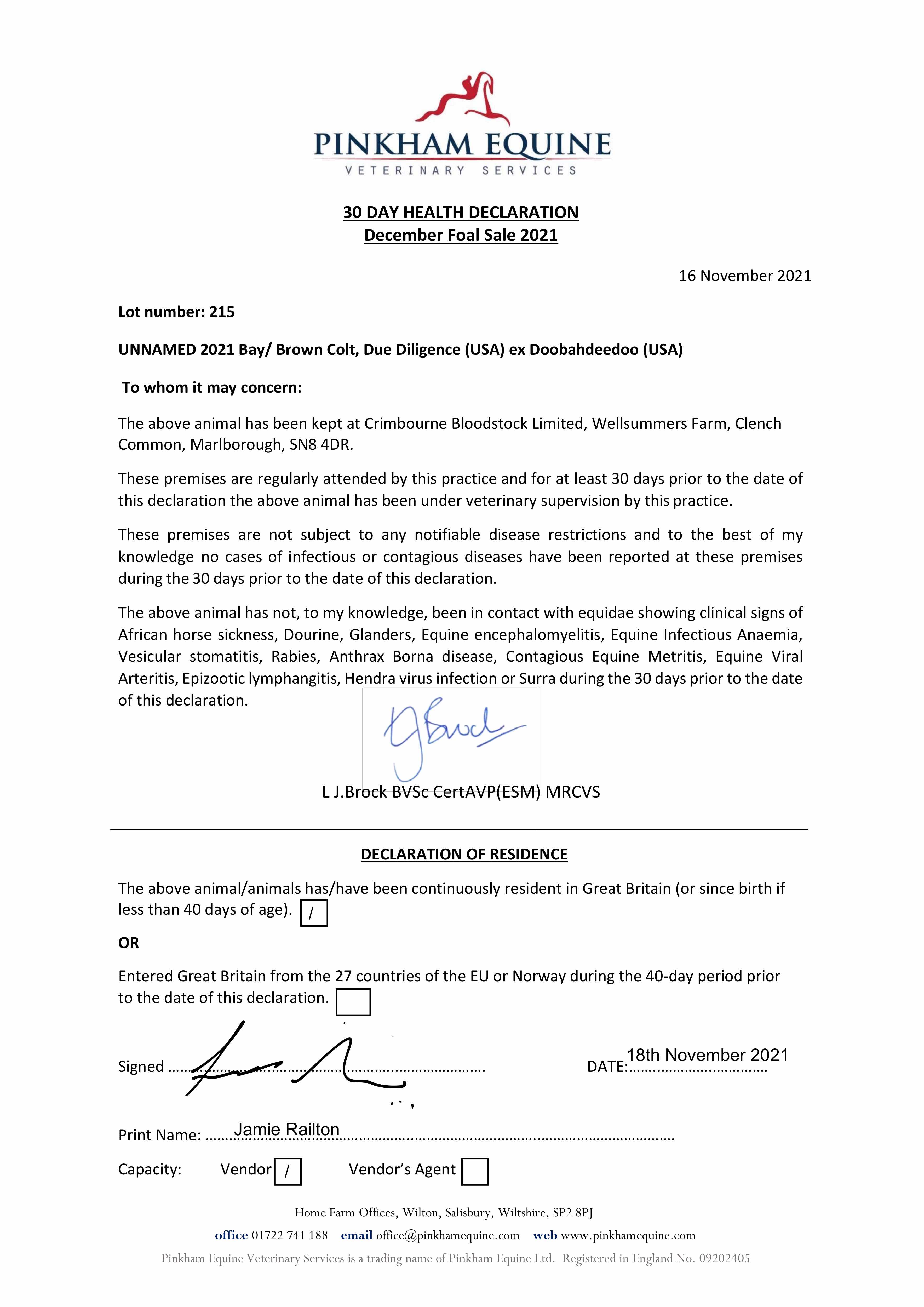 December Foal Sale 2020 lot 783 F. by Territories (IRE) 2020, Crimbourne Bloodstock Ltd.=>Lot Not Sold 11,000 gns