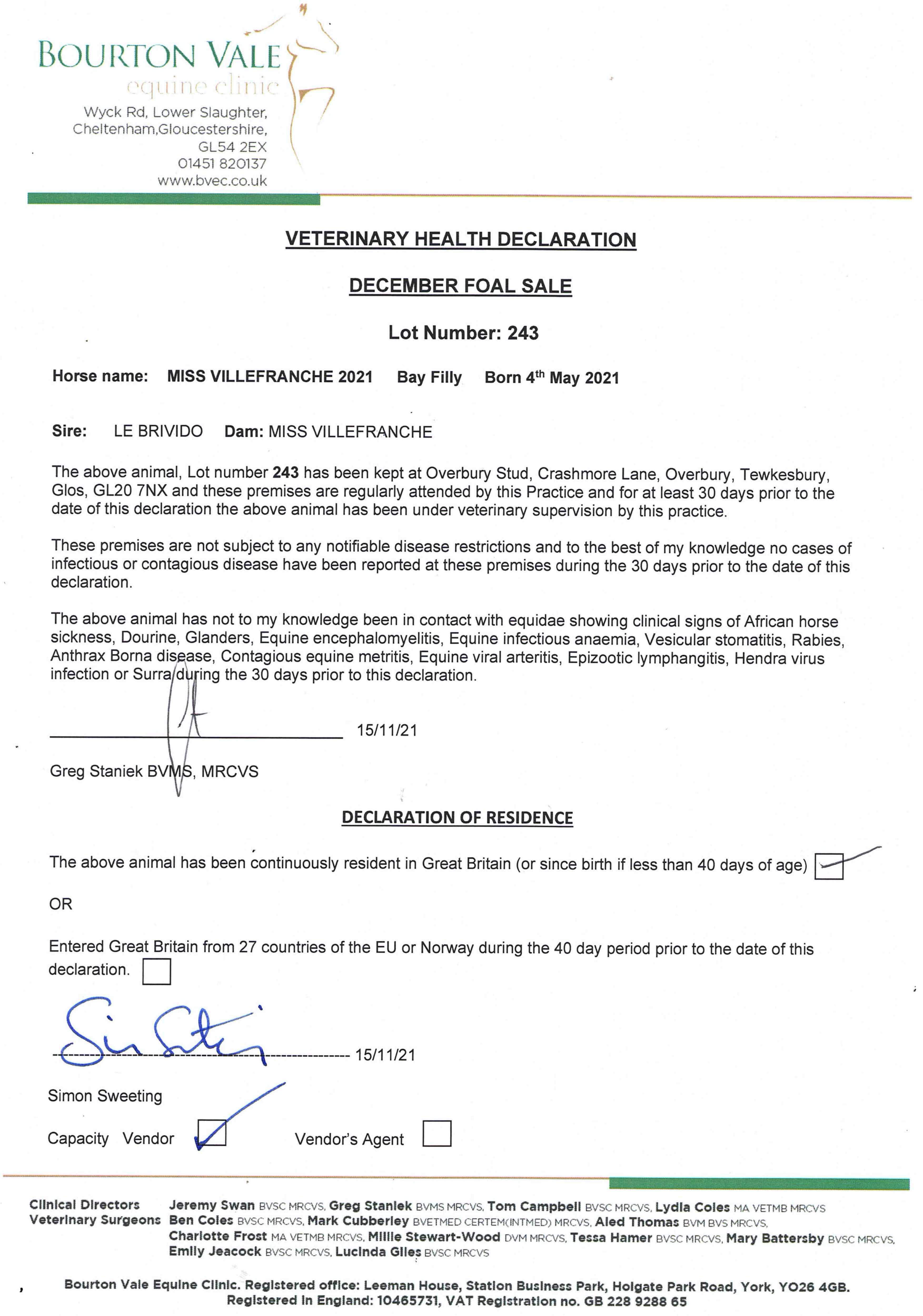 December Mare Sale 2020 lot 2185 Sur Mer (GB) (F. by Equiano (FR)), Jamie Railton (Agent)=>Nick Bell 15,000 gns