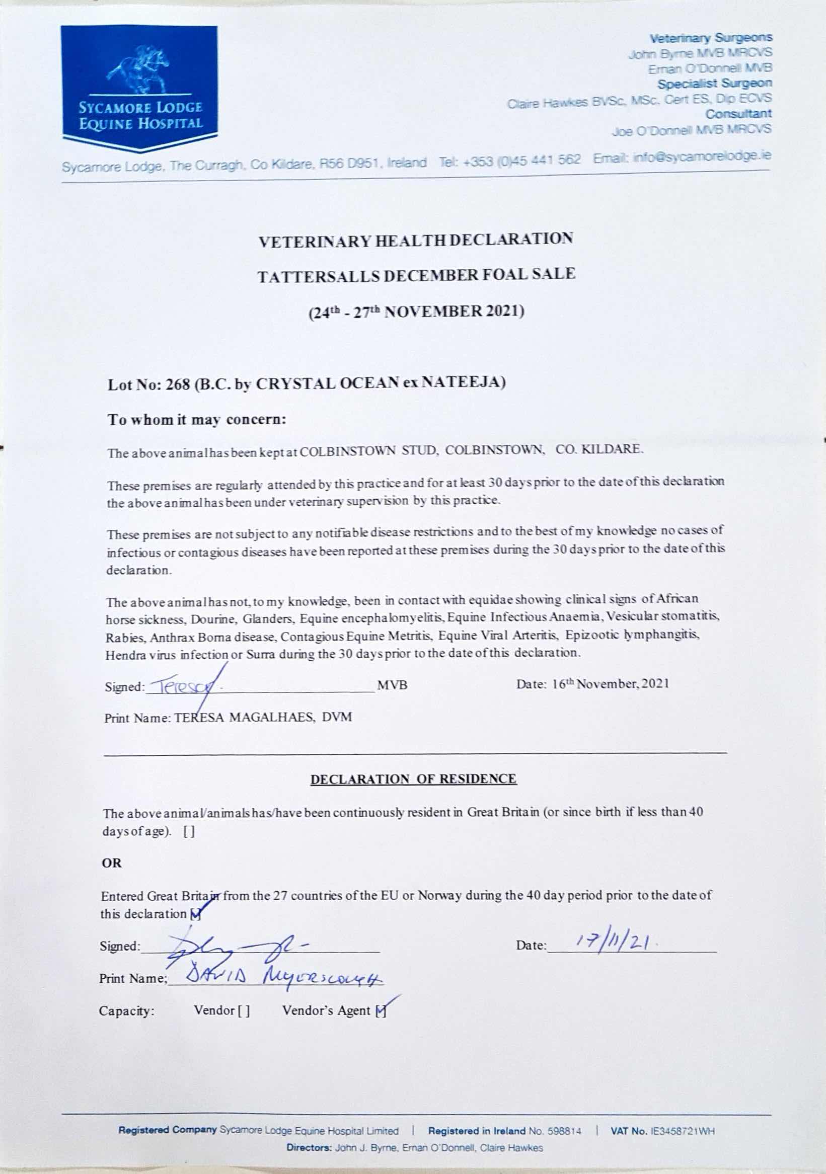 Online Sale - 18th January 2024 lot 1 Techno Lady (IRE) (F. by Camacho (GB)), Musley Bank Stables (R. Fahey)=>Vendor 1,000 gns