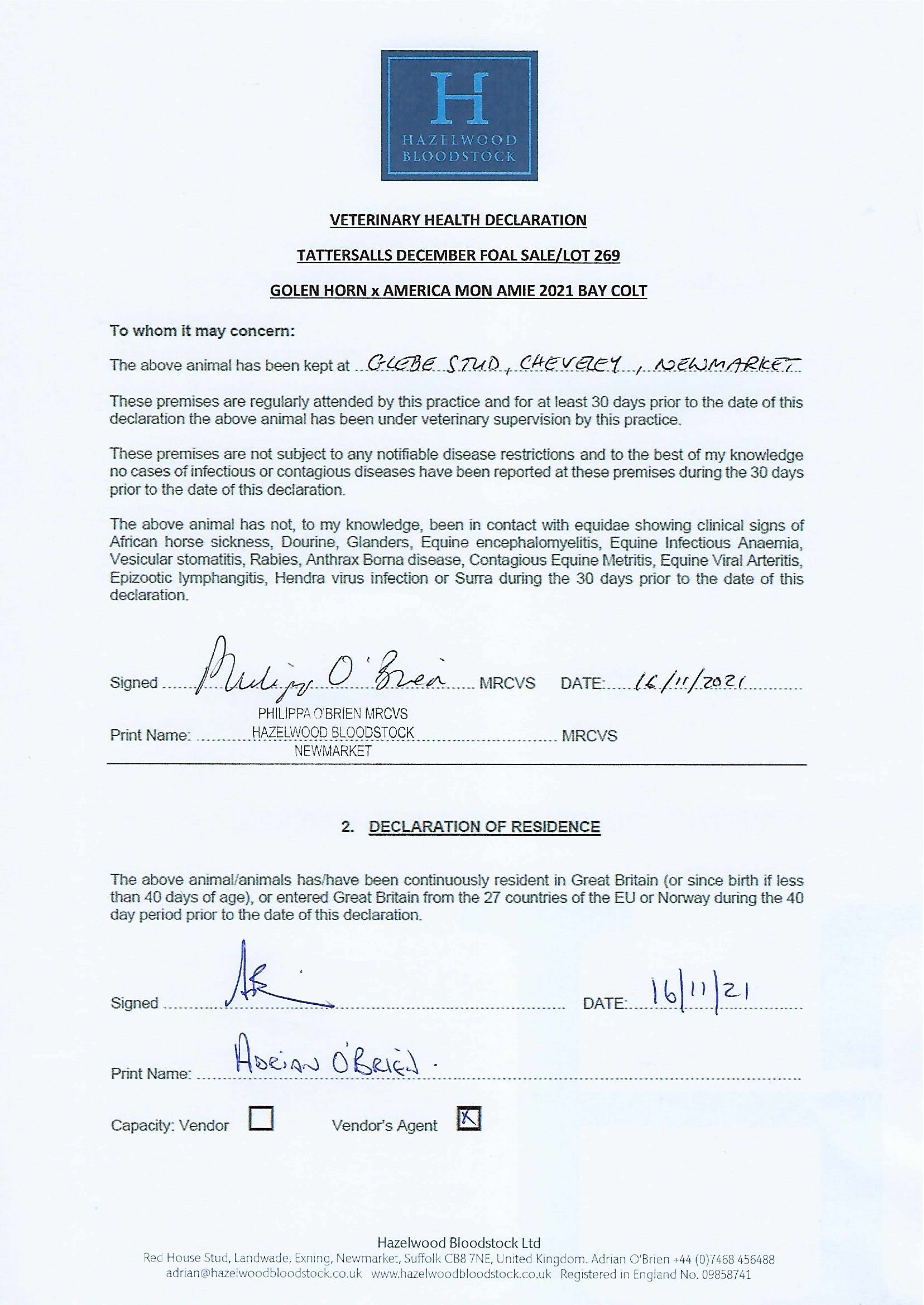 Contact: Adrian O'Brien ✆ +447468456488 ✉ adrian@hazelwoodbloodstock.co.uk