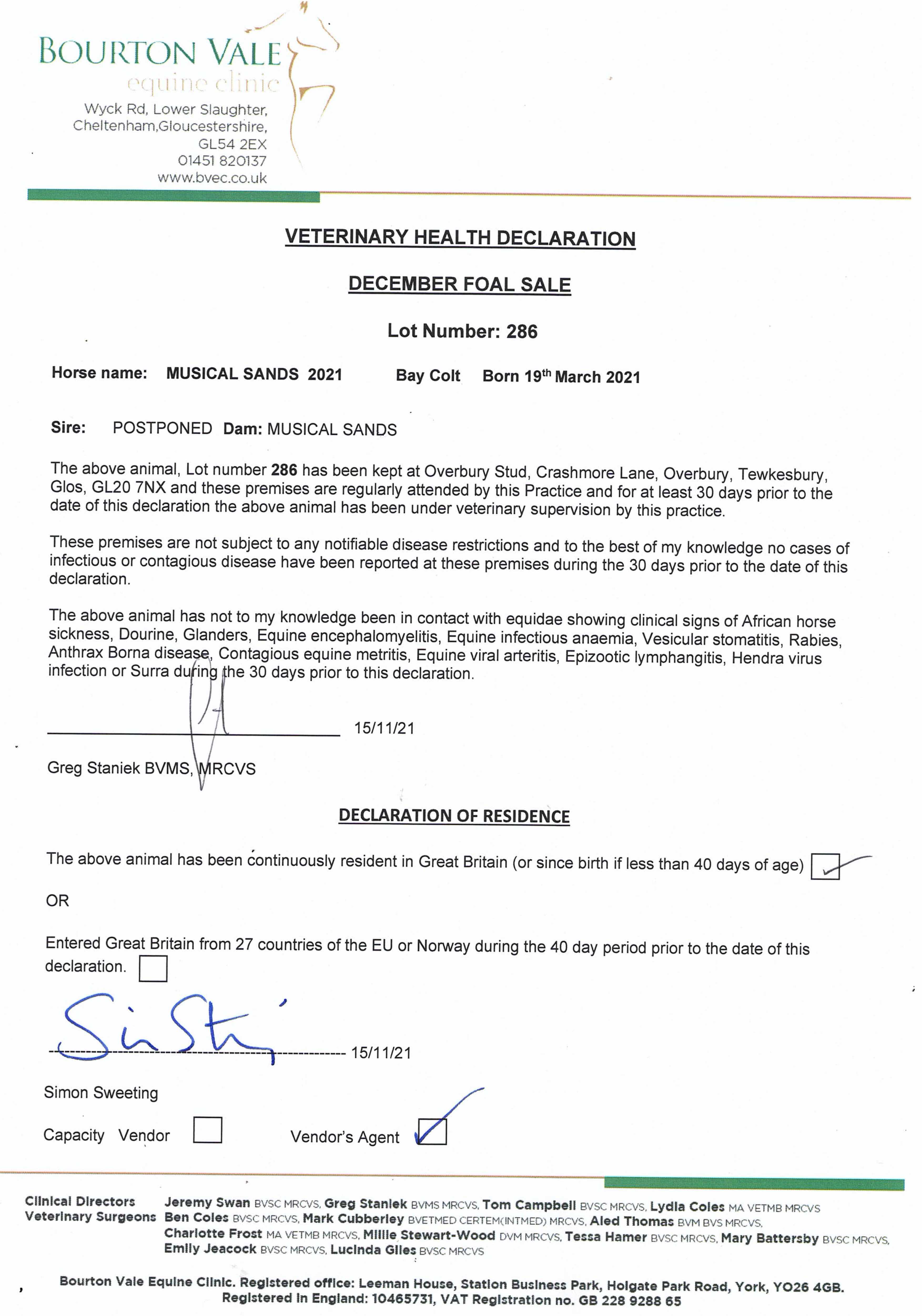 Consignor: Overbury Stud